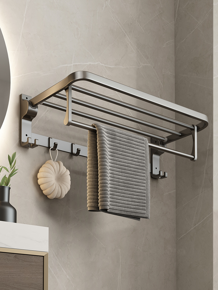 High-grade towel rack space aluminum bathroom rack wall-mounted punch-free powder room toilet towel rod toilet