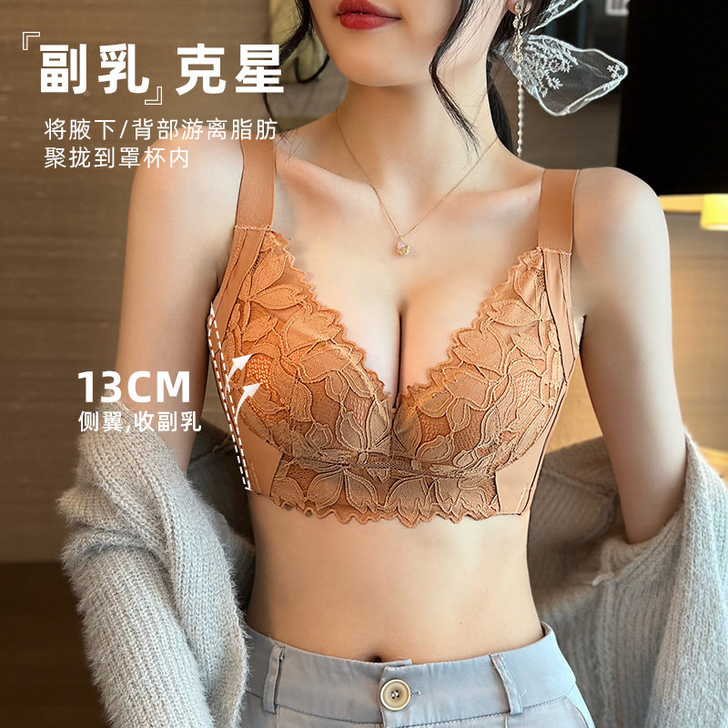 Small breasts gathered adjustment type underwear women's new soft steel ring correction side retracted breast upper support anti-droop bra summer