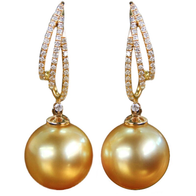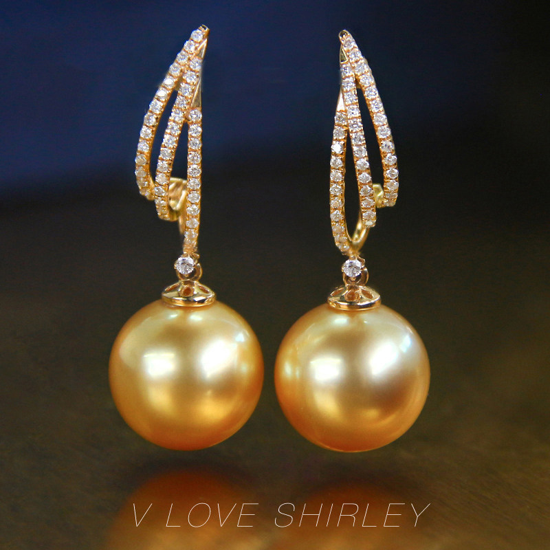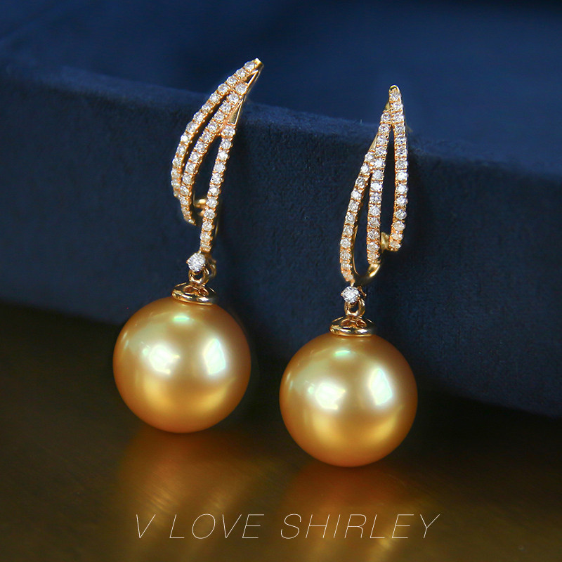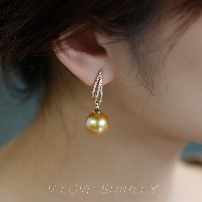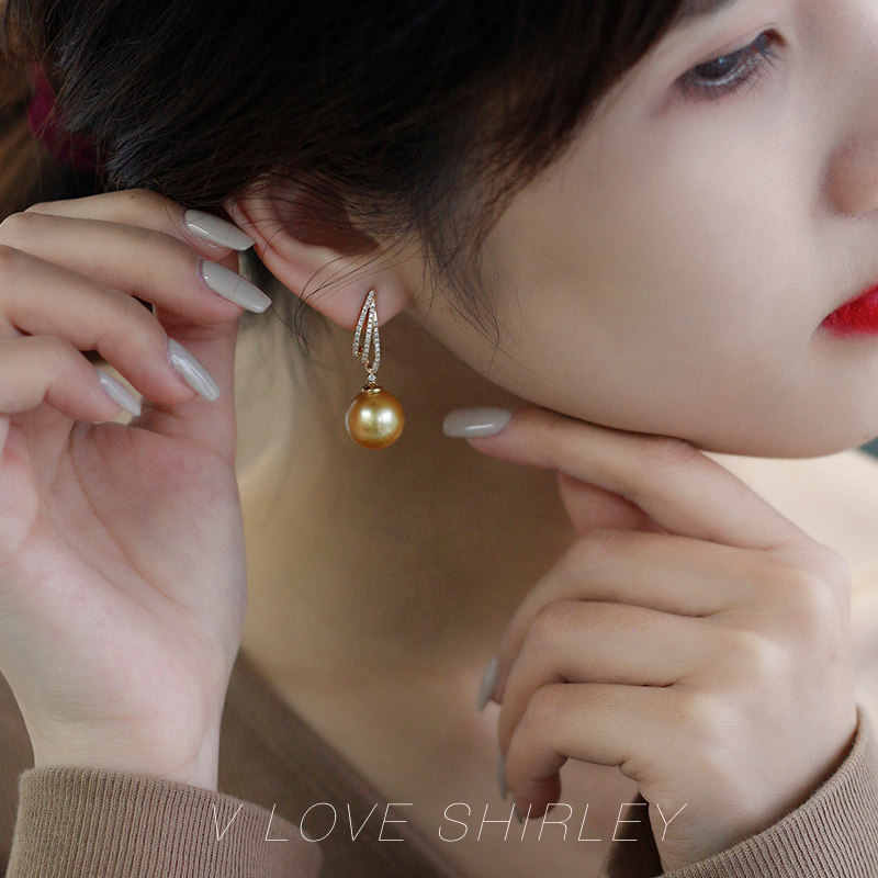 "Chu Chujin Silk" Wei Love Show Linatural Strong Gold Nanyang Gold Pearl Diamond Earnail 18k Gold Pearl Earrings