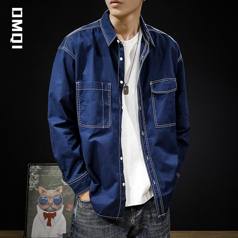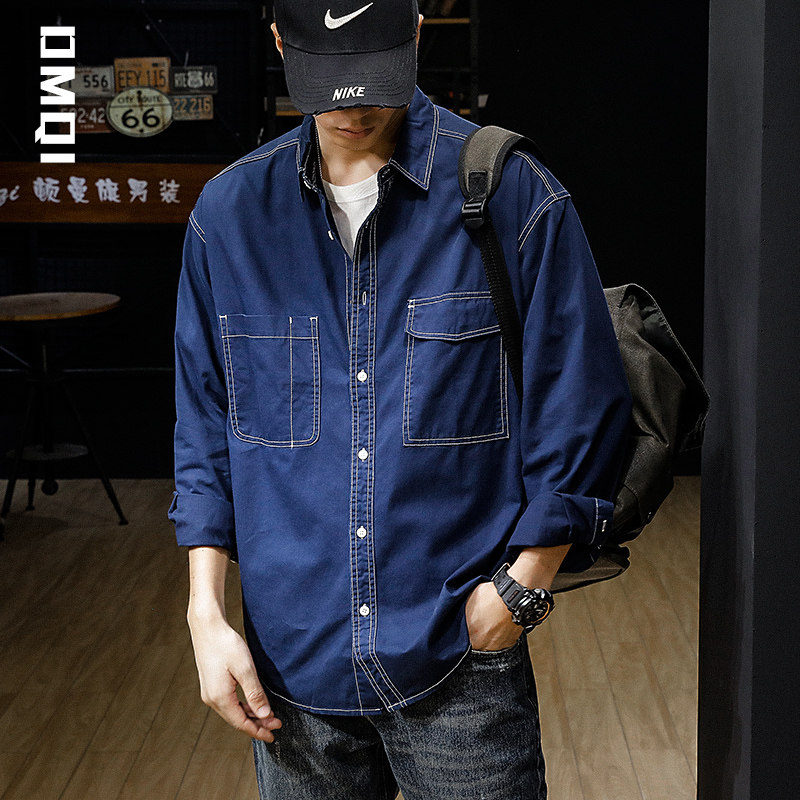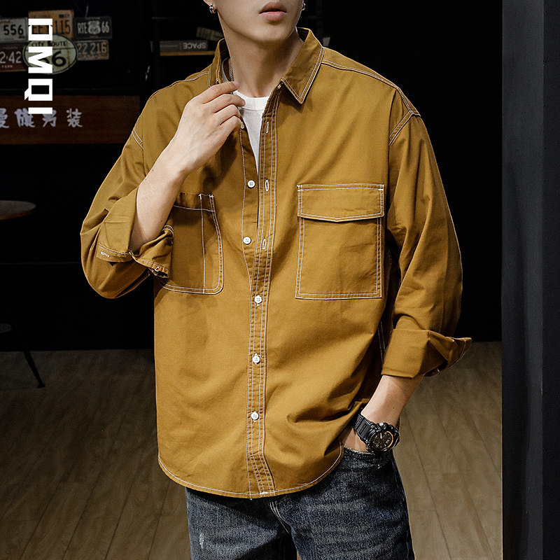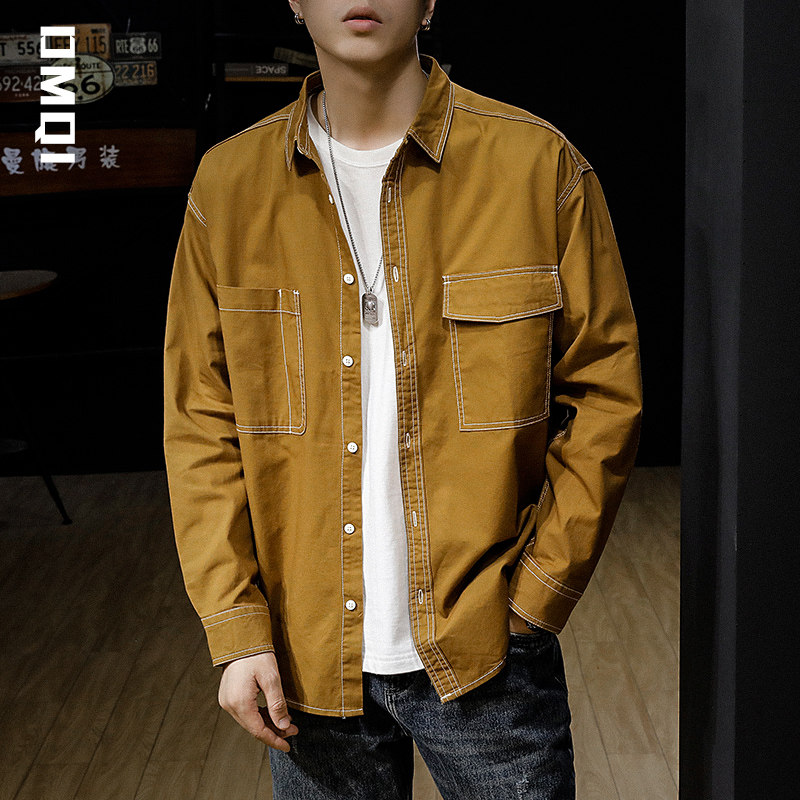 Spring autumning-line multiple bags American retro casual long sleeve shirt male tide ins loose men's spring shirt jacket