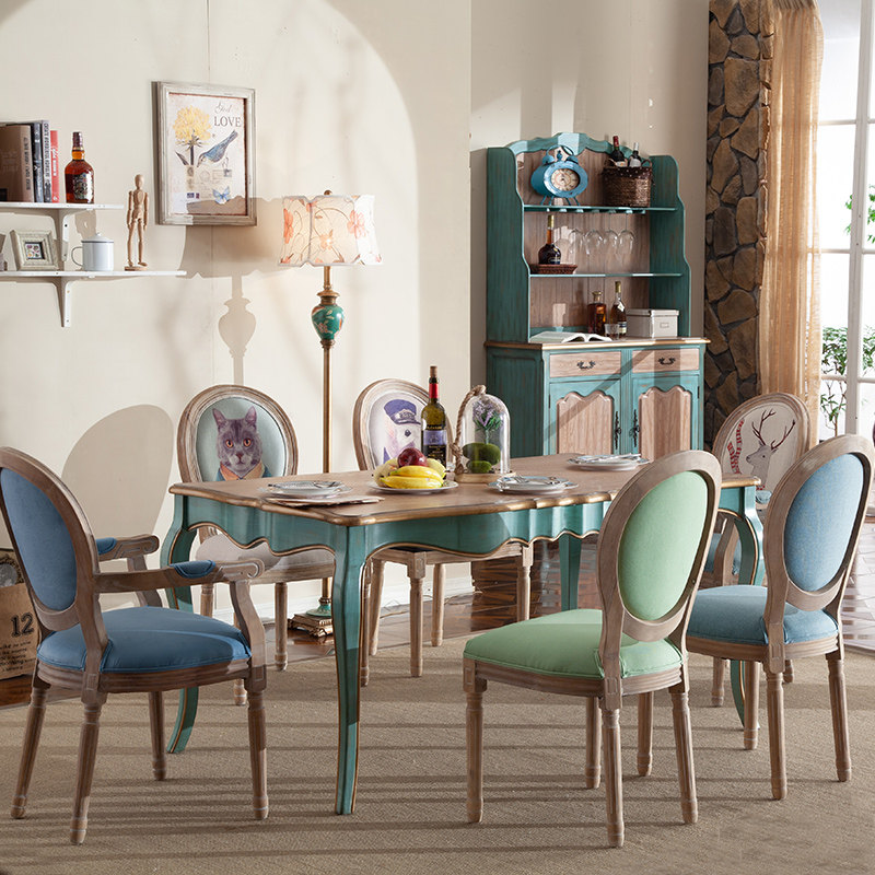 Solid wood retro home dining room dining chair cafe backrest stool Nordic American minimalist country makeup chair