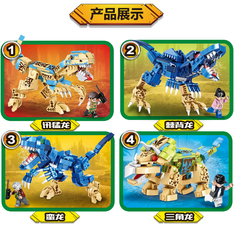 New Children Assembly Building Blocks Barking Dragon Dinosaur World Series 4 Contracts 1 Man Children Puzzle Toys Gift