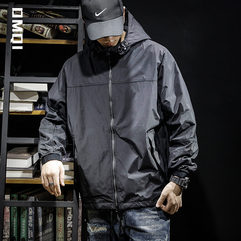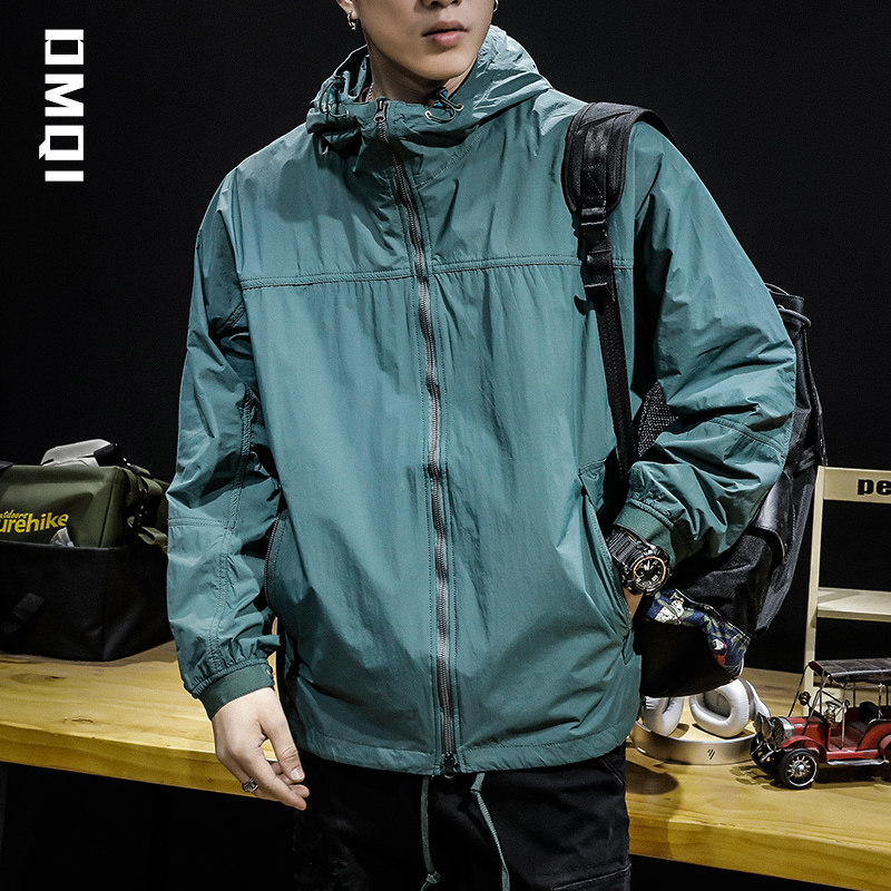 Spring Autumn Outdoor High-end Quality Tandem Cap Windproof Submachine Clothing Jacket Male Loose Large Size Yard Spring Flight Jacket Windsuit