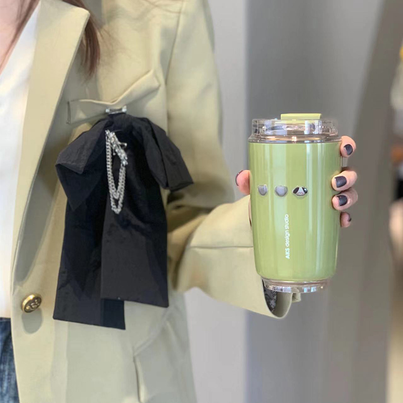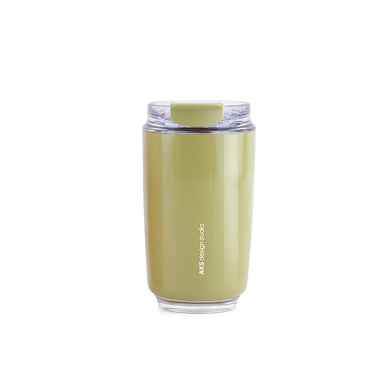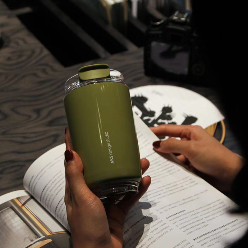 AKS coffee cup stainless steel INS portable breakfast cup with lid on-board short effect insulated cup ceramic coated liner