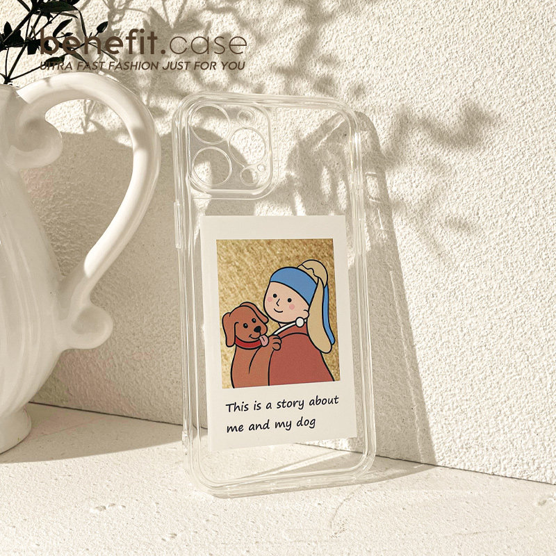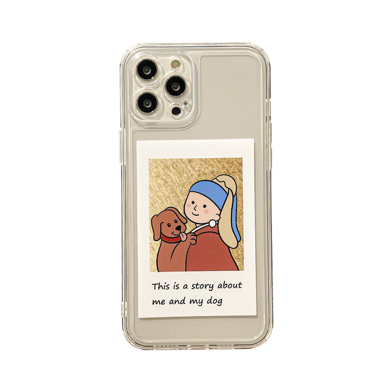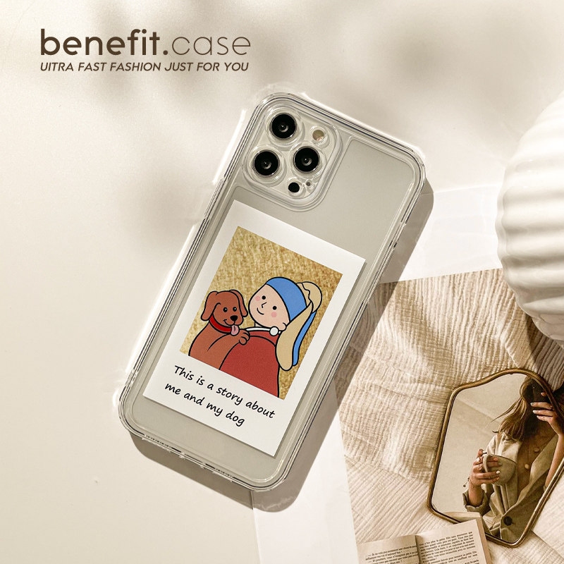 Benefit cartoon dog and pearl girl apply Apple 13promax mobile phone protection shell creative iphone12mini oil painting xsmax silica gel xr original
