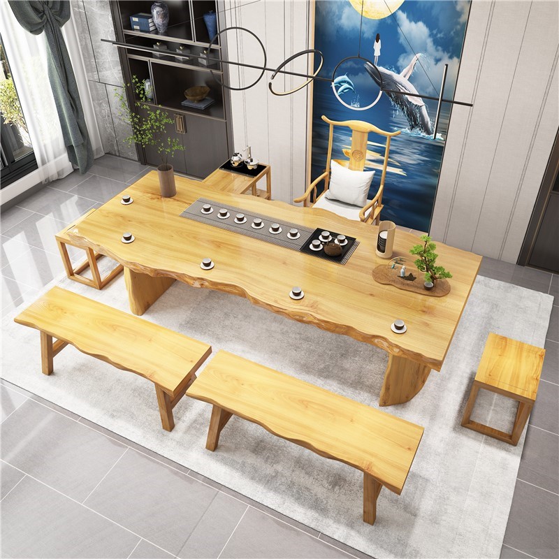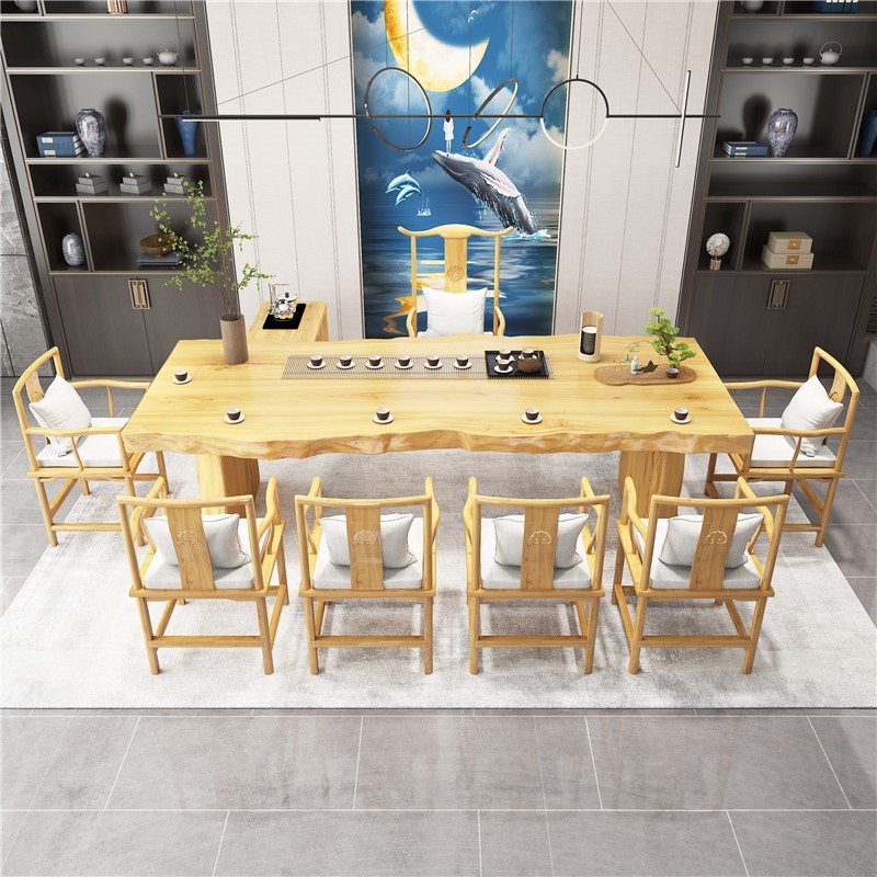 New Chinese Log Tea Table and Chair Combination Office Solid Wood Tea Table Zen Household Simple Kung Fu Drinking Tea Table