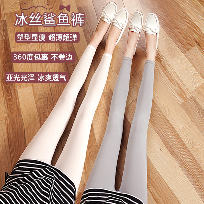 Japanese summer ultra-thin ice shark pants outside wear stretch thin leg goddess pants high-waisted hip lift yoga pants nine points