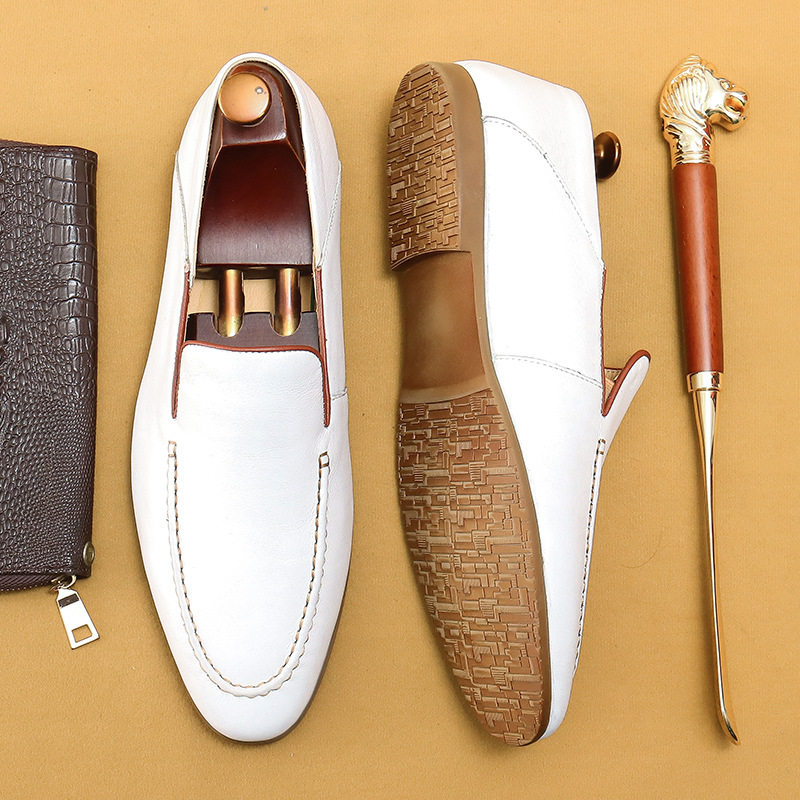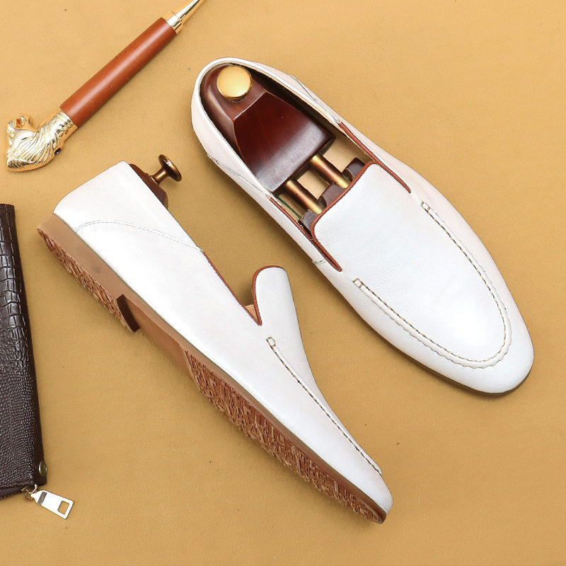 Han edition of men's bean shoes leather white casual leather shoes in summer breathable soft soles 37 yards 45 yards