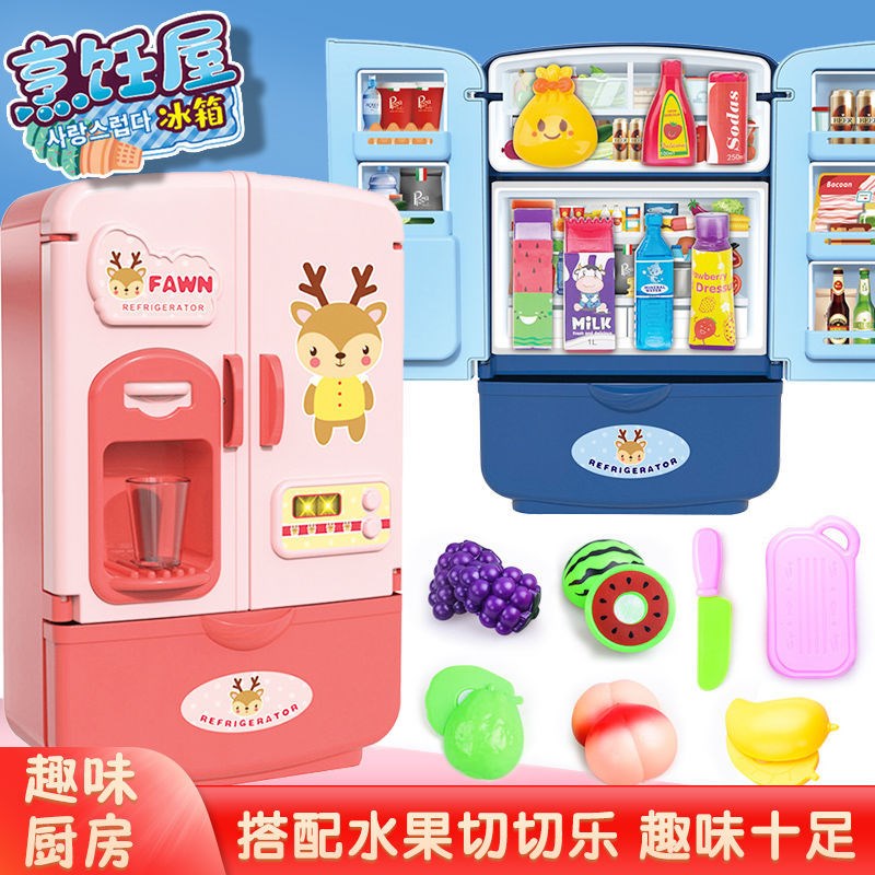 Children dress Home Wine Fridge Toy Home Appliances Cheeschle Fruit Girl Kitchen Cook Cut Vegetable Mini Suit