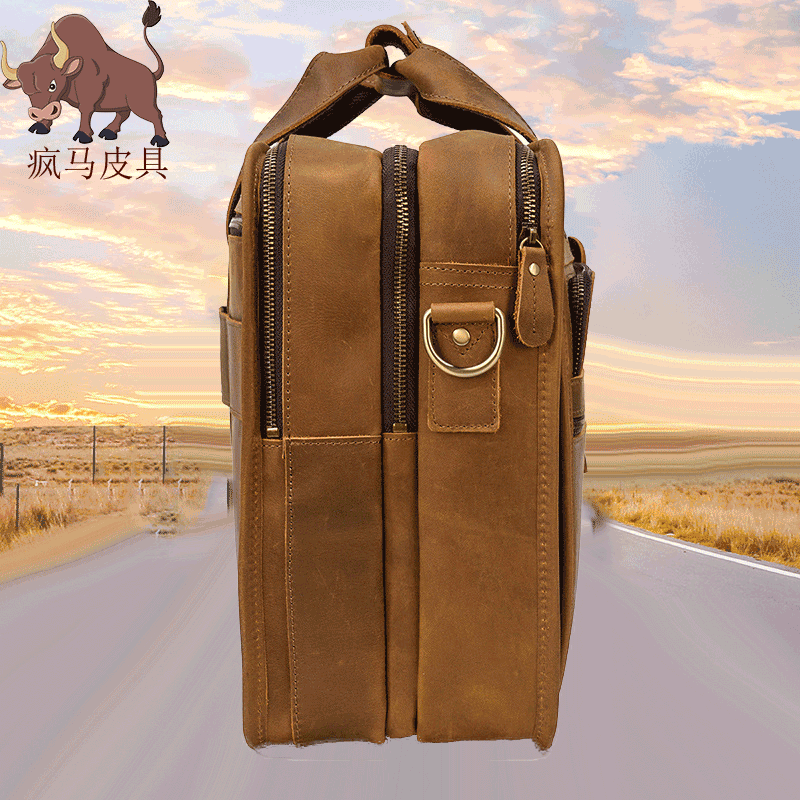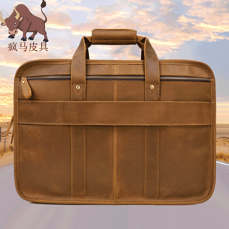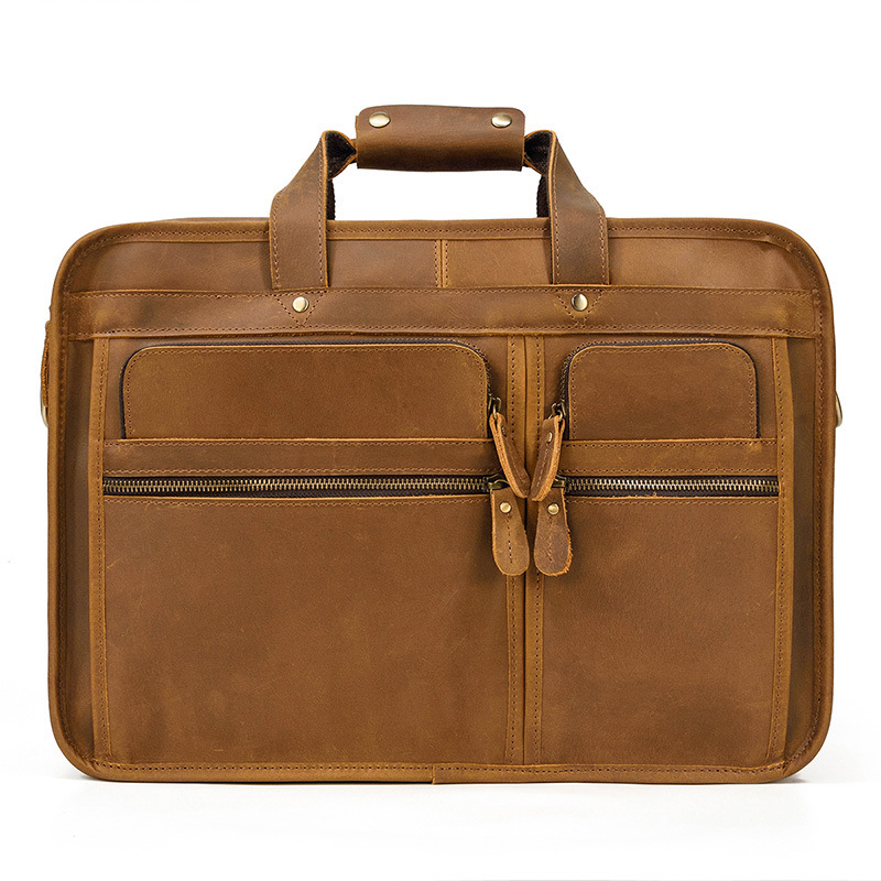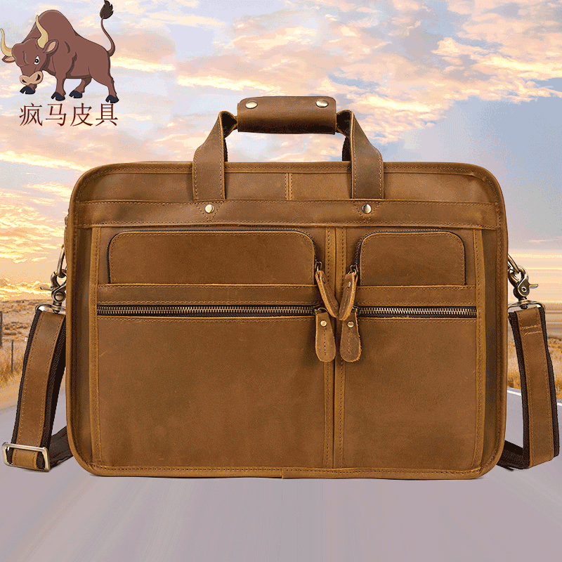 Mad Mapi Men Retro Briefcase Business Package Large Capacity Pure Genuine Leather 17 Inch Mobile Computer Bag Business Trip Bag-Taobao