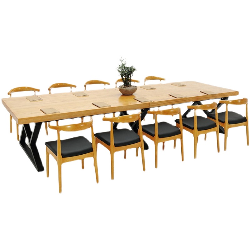 Log Solid Wood Meeting Table Long Table Short Table Brief Modern Office Strip Table Bench Large Negotiating Table And Chairs Combination
