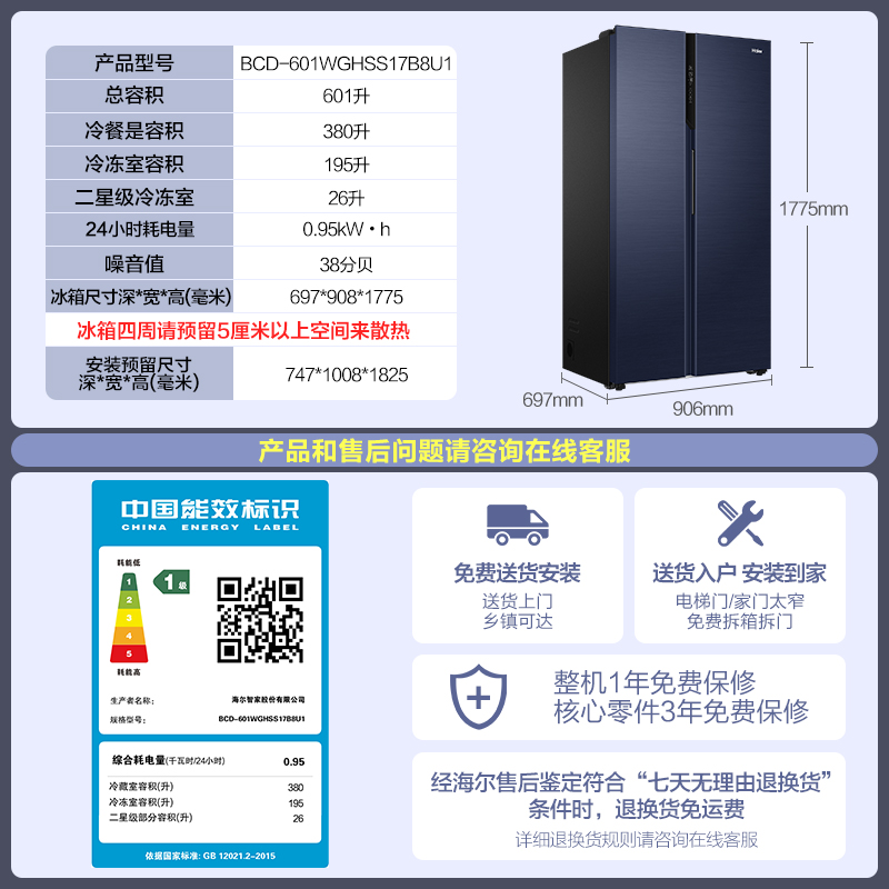 Ali official Haier 601L refrigerator opens double door large capacity frequency conversion free frequency free kitchen