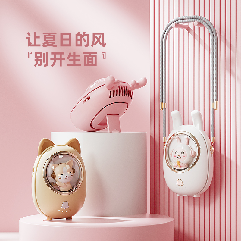 2022 new products office desktop cartoon mini fan outdoor convenient star pet lazy hanging neck small fan