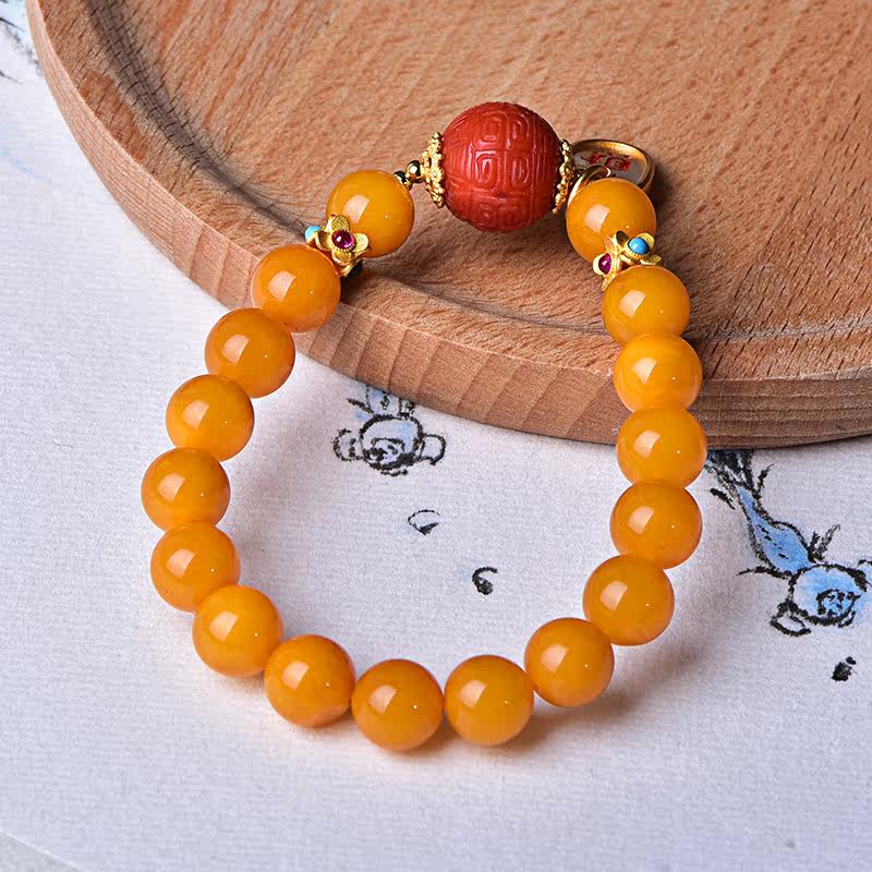 Zhenya jewelry natural honey wax ball string chicken oil yellow honey 925 silver plated