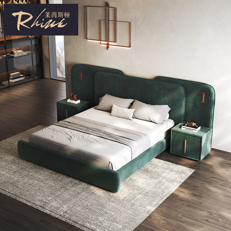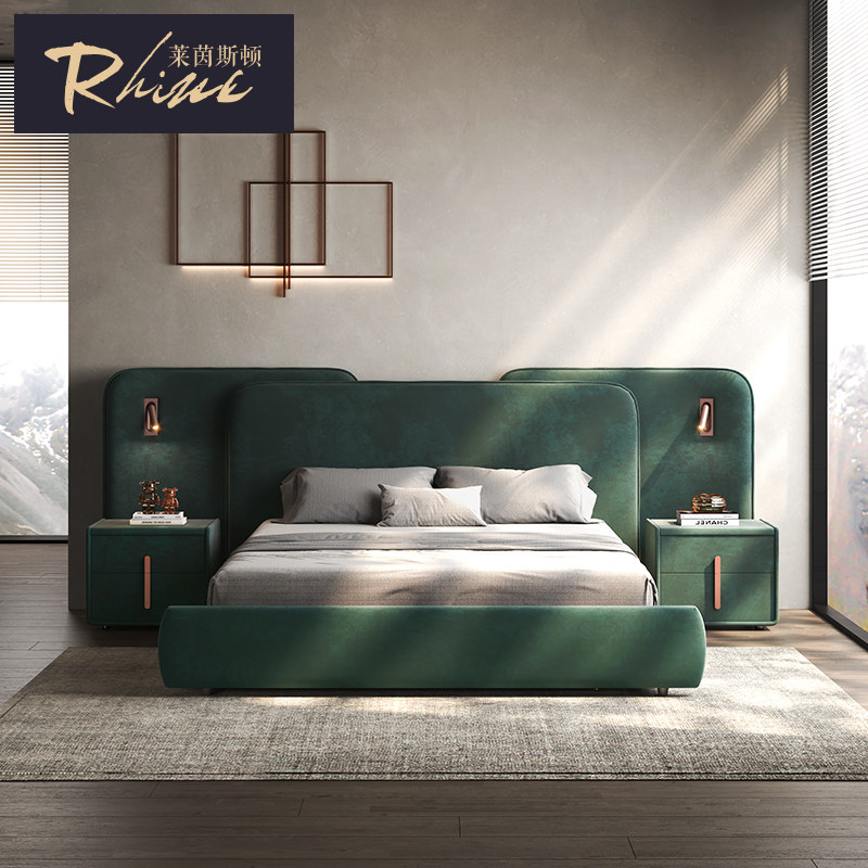 High-end main sleeper large bed Advanced frosted cloth small flying elephant light extravagant double man bed upscale villa wedding bed soft-leaning bag with light