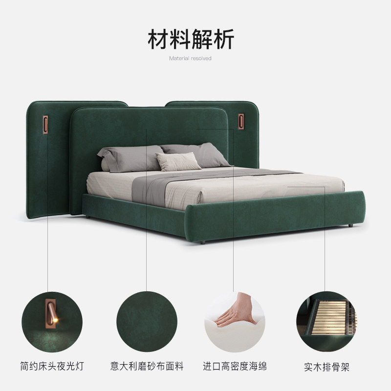 (1 8 m bare bed) imported frosted cloth-ink green (1 8 m bed mountain cashmere latex mattress) - ink green (1 8 m bed with nightstand * 2) - ink green (1 8 m bed