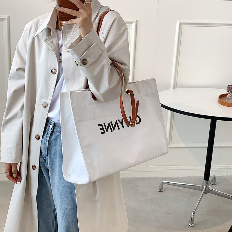 Customized large-capacity canvas bag female handpick shopping pack diy hand drawing to print pattern logo thicker stereo bag
