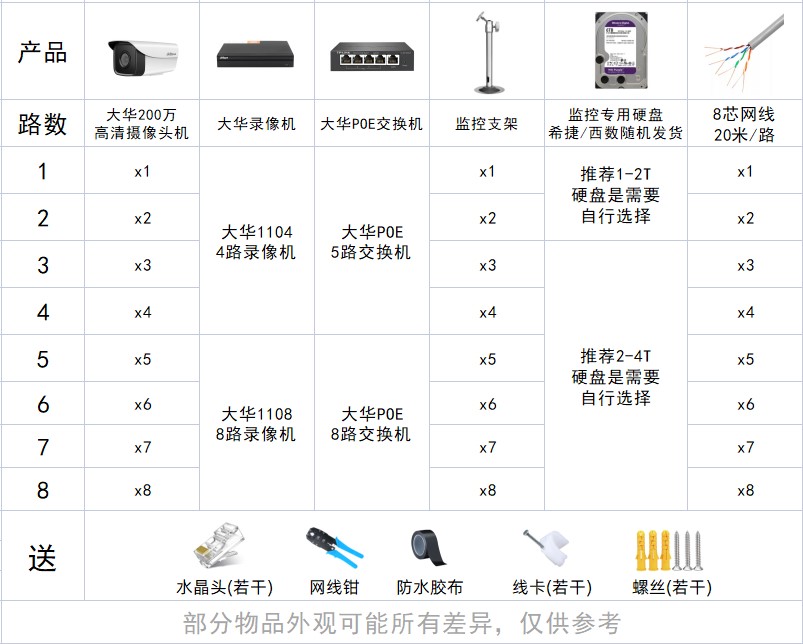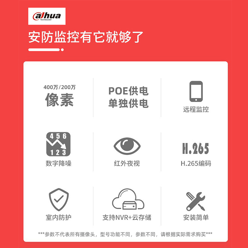 Dahua POE camera 2 million monitoring equipment set infrared night vision waterproof recording commercial monitor package