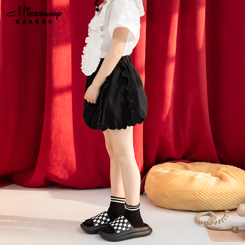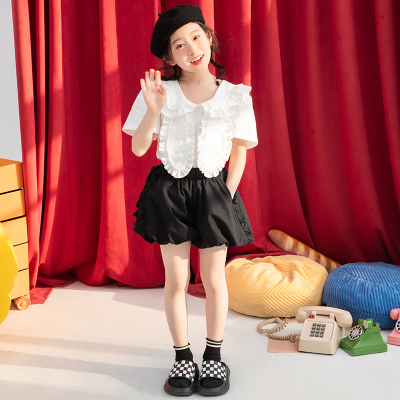 Mother and daughter dressed black loose waist broad legs and blossom shorts 2022 new relaxed casual pumpkin pants