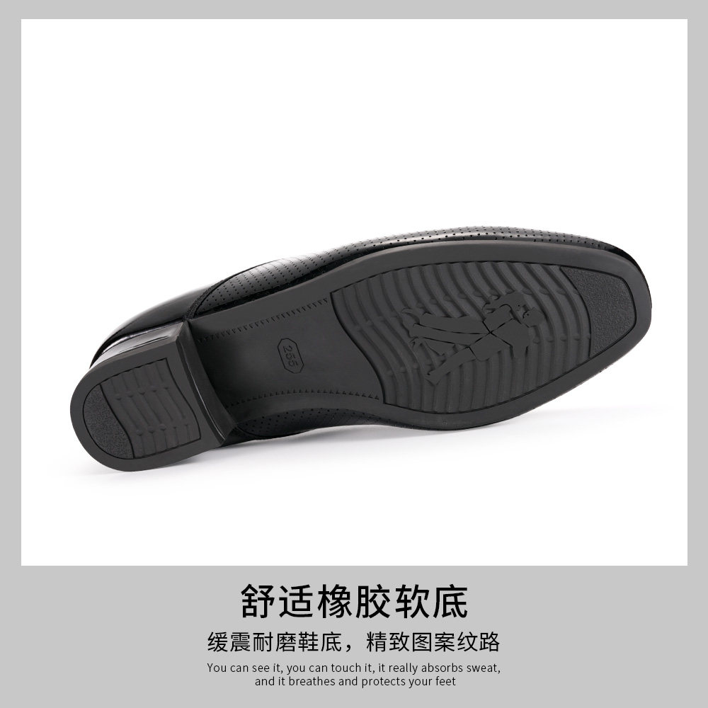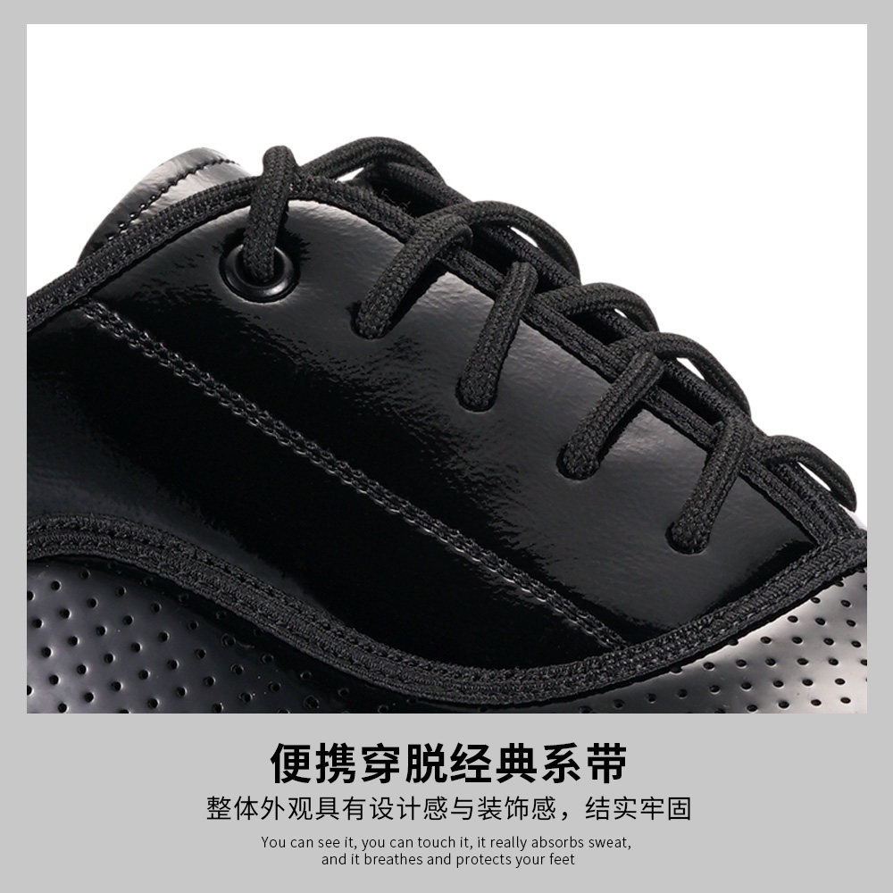 Black lacquered leather with a rubber soft bottom