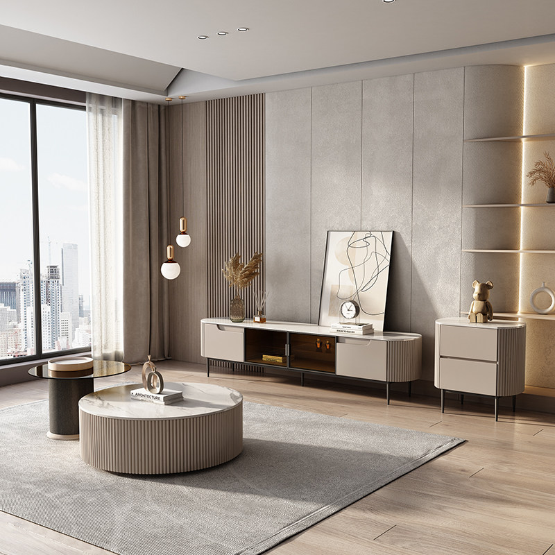 Slate TV cabinet modern minimalist living room Italian minimalist round storage combination light luxury home small apartment coffee table