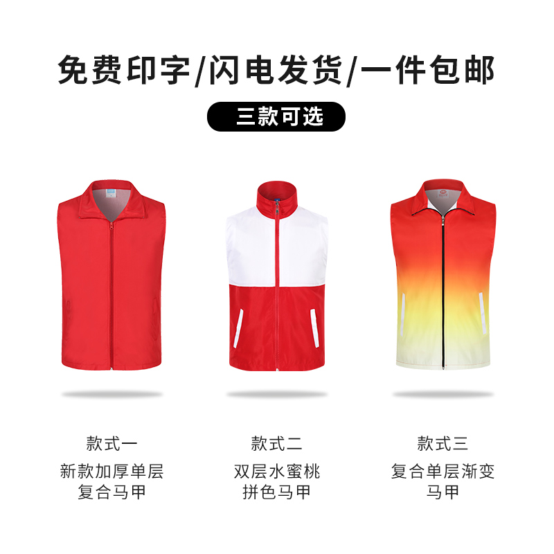 Work leader red vest custom printed logo word volunteer clothing gradient color lapel volunteer safety vest