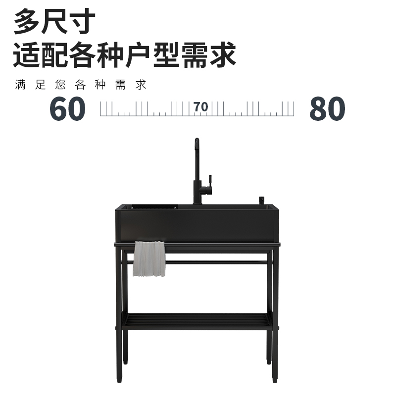 Simple Wash Basin Single Sink With Bracket Kitchen Sink Double Sink Stainless Steel Washbasin Integrated Dishwashing Pool Black