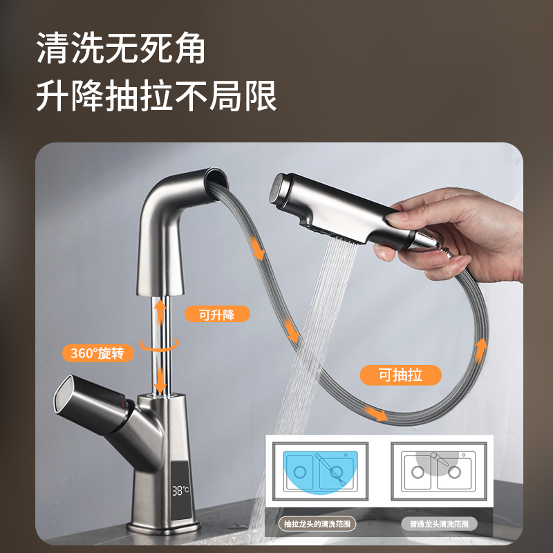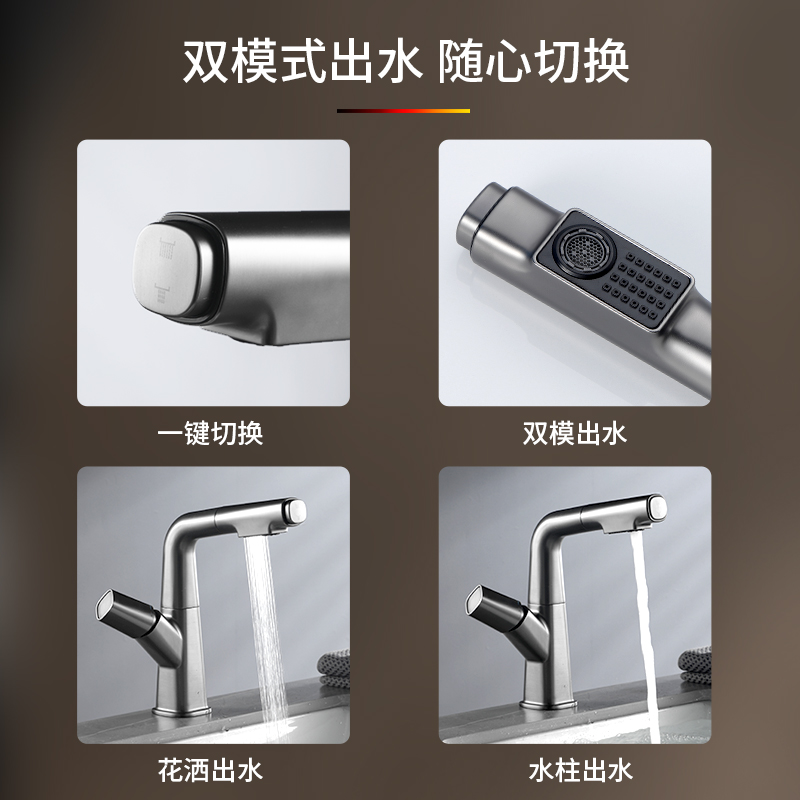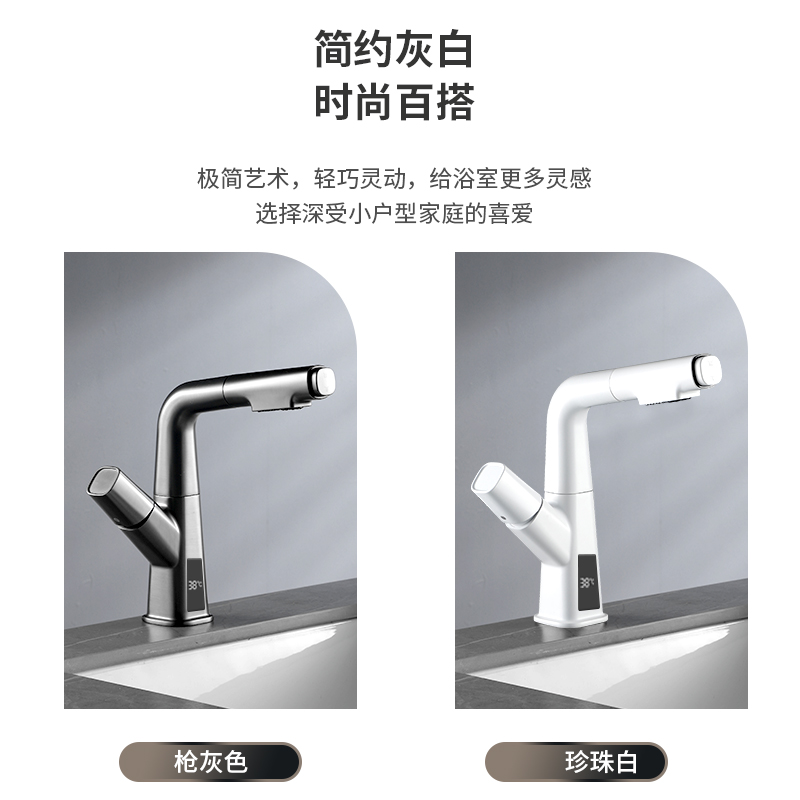 New product wocam gun gray white pull-out basin faucet hot and cold all copper wash basin lifting and rotating
