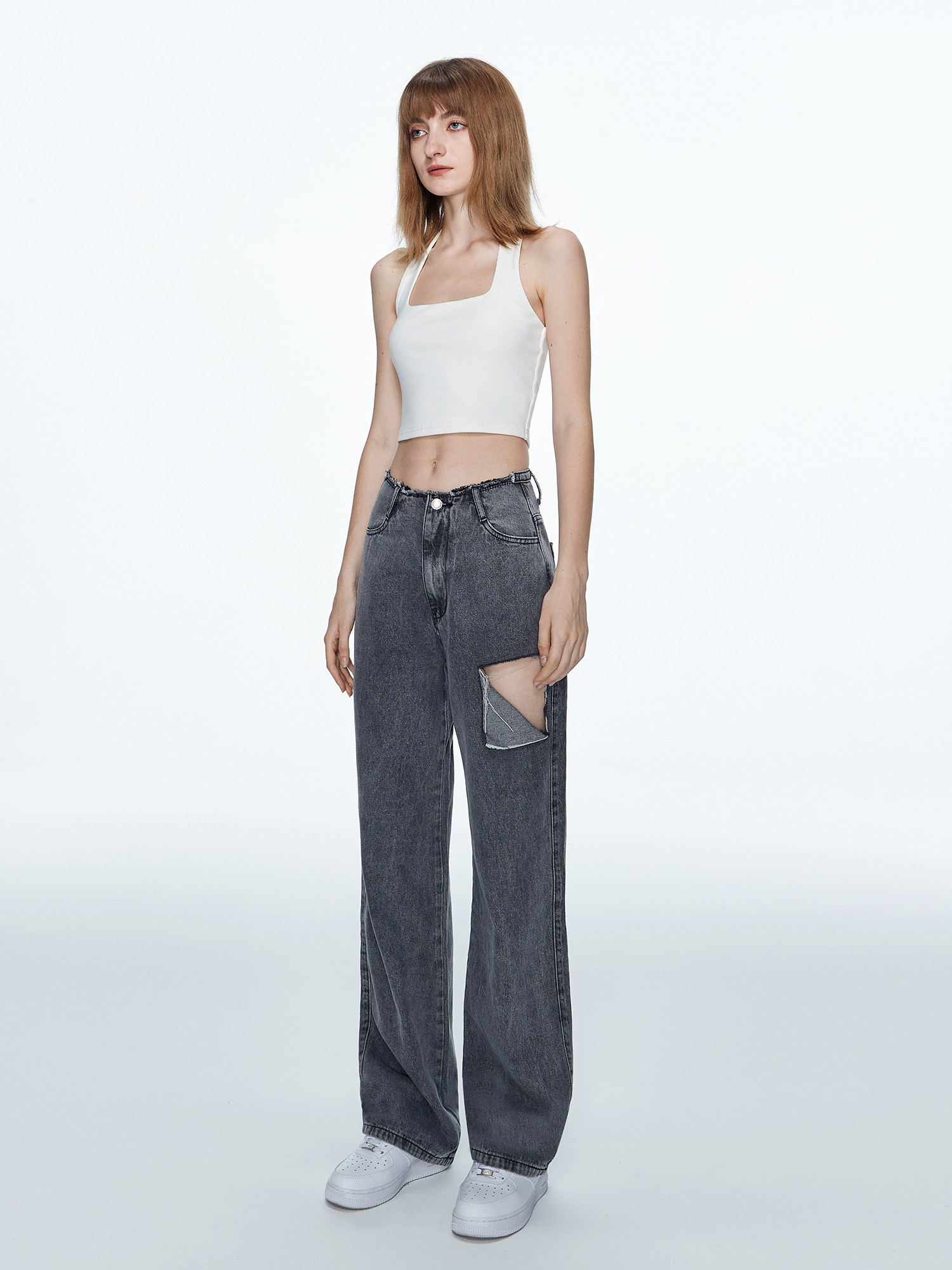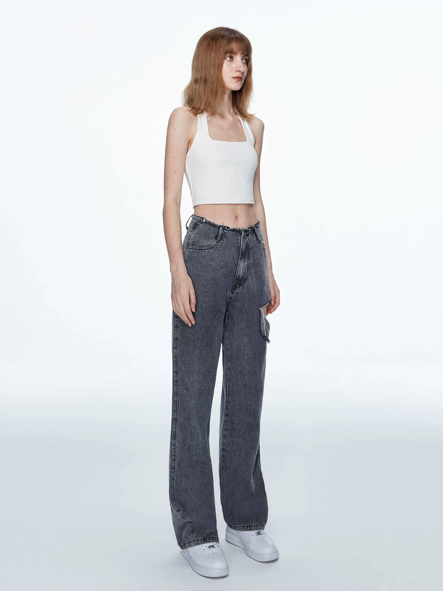 MADE NOTHING (original 19Club) original high - waist baby girl slim tumble straight tug jeans