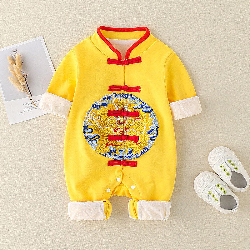 Yellow Horse Vest Baby 100 days Spring and autumn Baie New Year Baby Age Dress Male Fall Boy Clothes Dragon Robe and Tang Costume Autumn