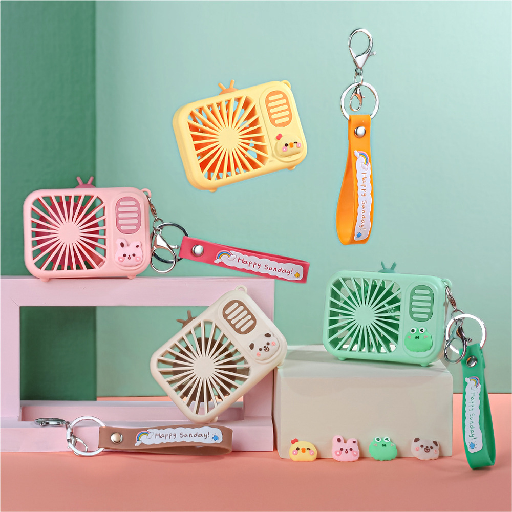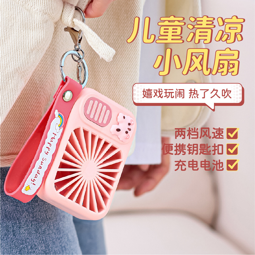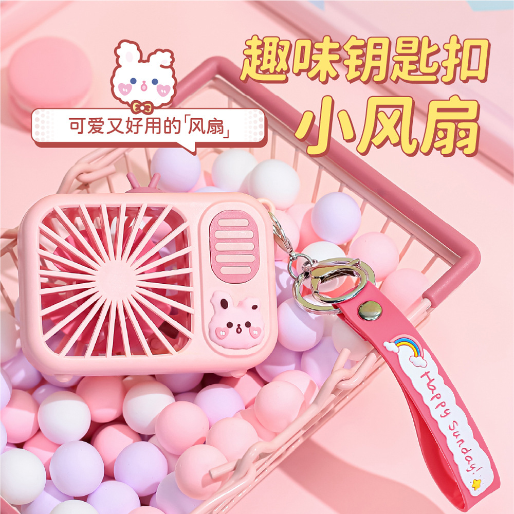 Hand-held keychain small fan USB charging student cute cartoon girl heart portable mini charging fan