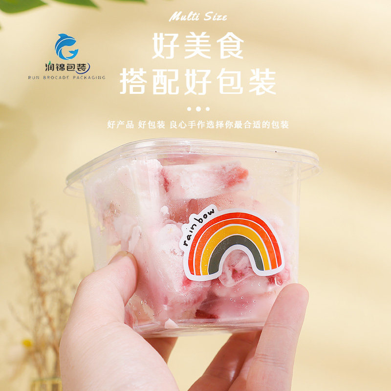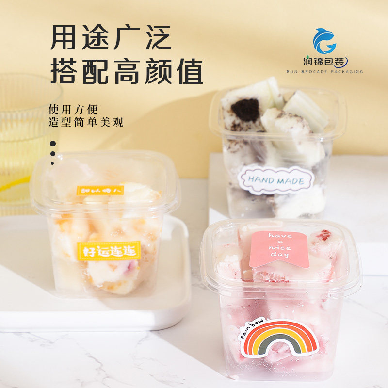 Net Red Thick Cut Fried Yogurt Square Packing Box Ice Cream Transparent Packaging Boxes Mousse Cup Wood Chaff Fruit Pudding