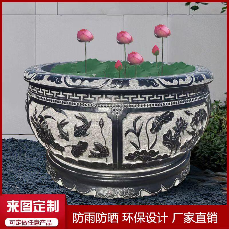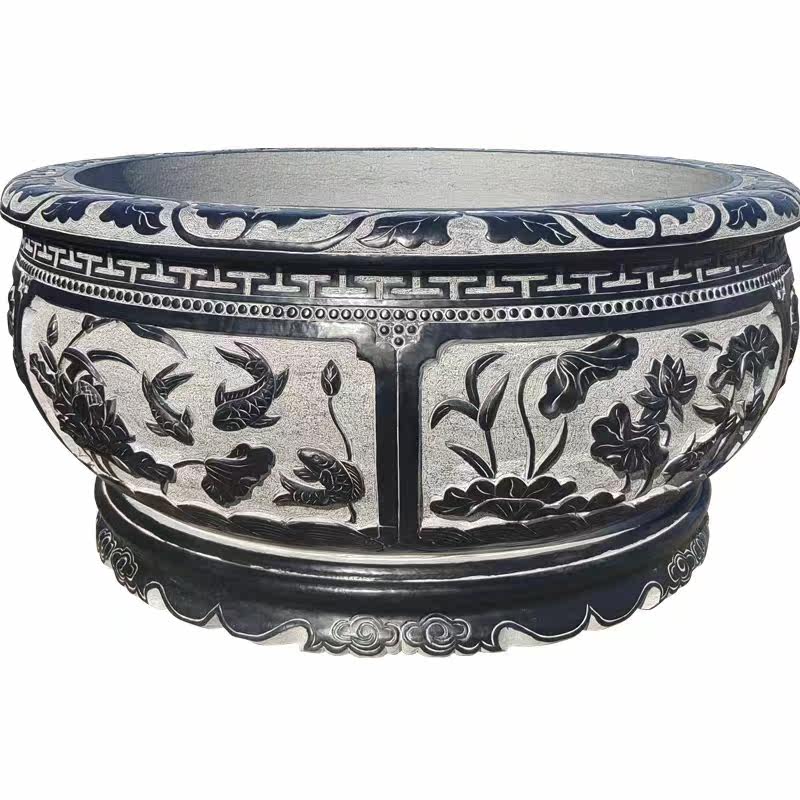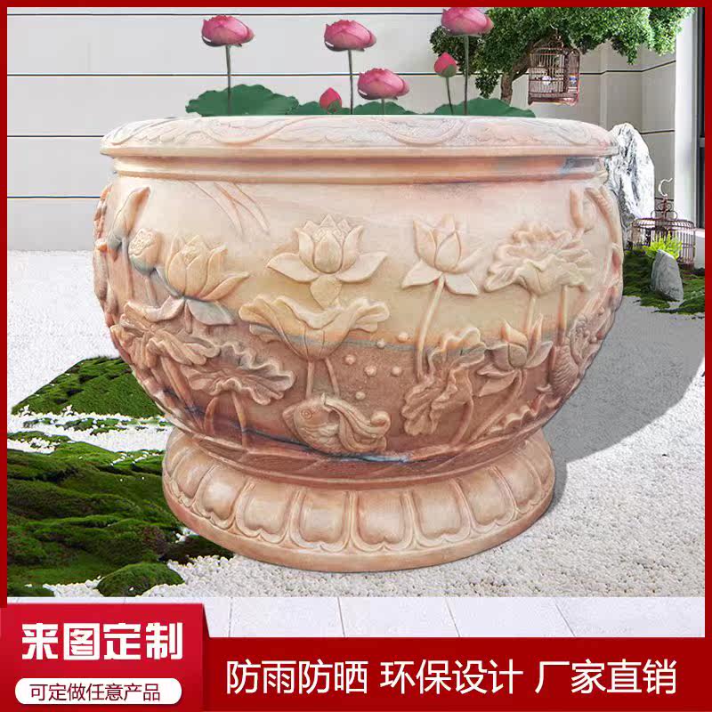 Natural green stone fish tank flower pot green stone raising fish pond Han white jade flow water basin Late Xia red custom patio flowing water swaying pieces