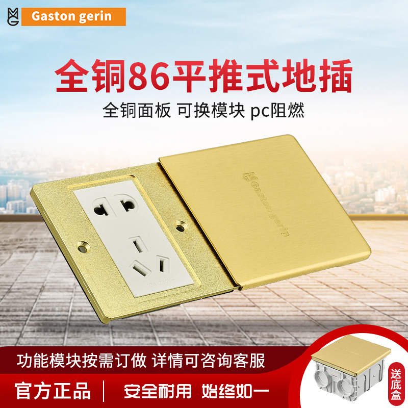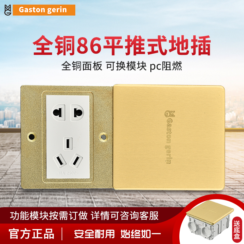 Type 86 Slide Lid Flat Push Silver Grey Stainless Steel Ground Socket Module Substitutable