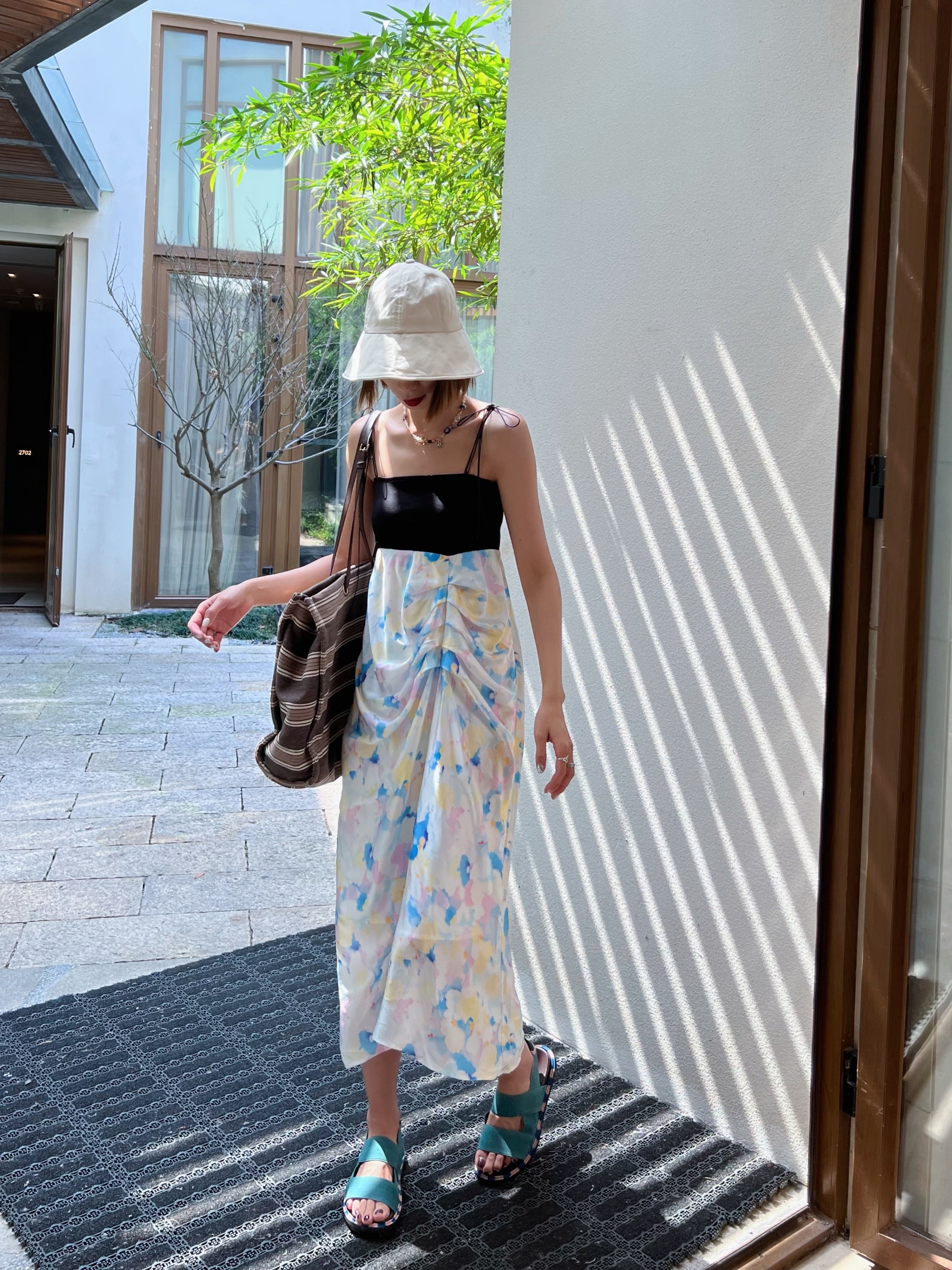 I have a cat outside Niche design satin high-end holiday dress long version dress summer
