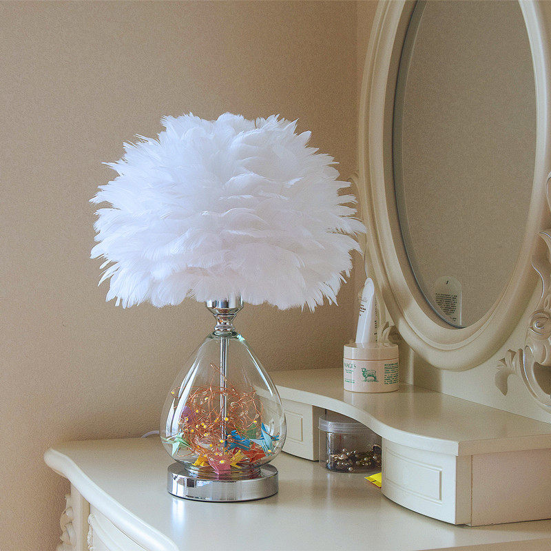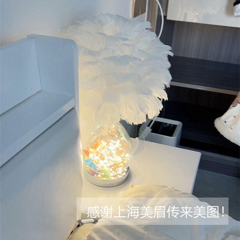 Feather Table Lightroom Lights Simply Modern Nordic Intelligent Romantic Birthday Gift Wedding Feather Bed Red Bed Light
