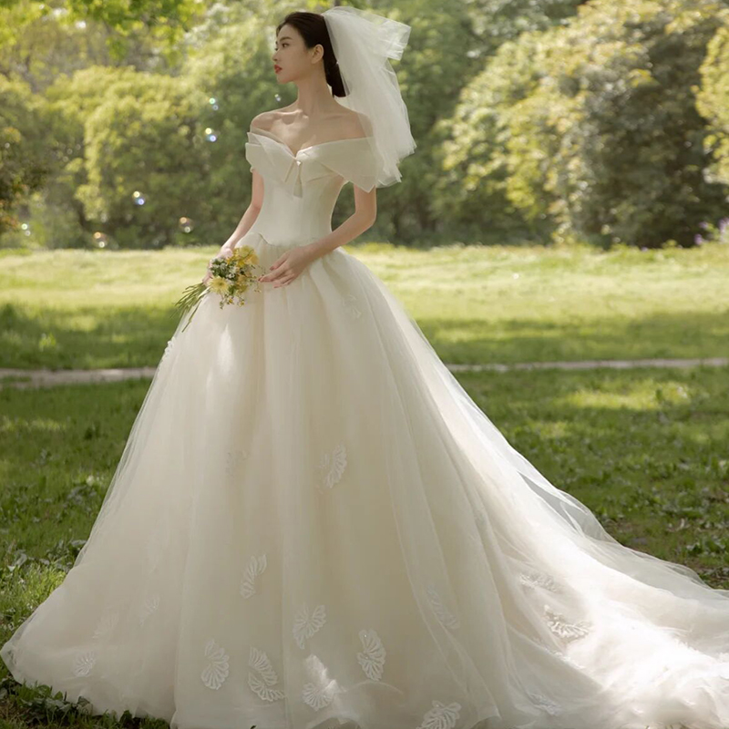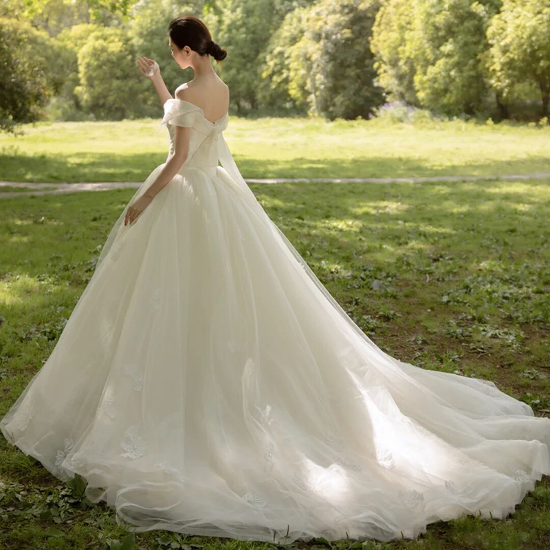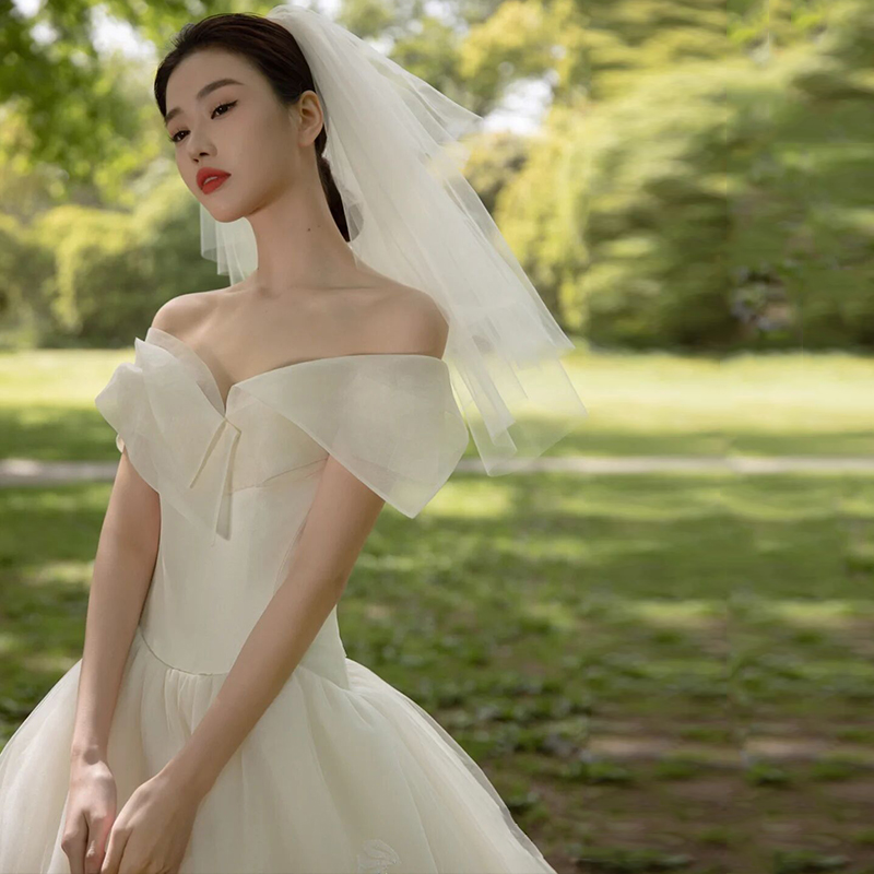 Mori wedding dress 2023 new bride super fairy one-shoulder niche high-end lawn go-out gauze fugitive princess gauze