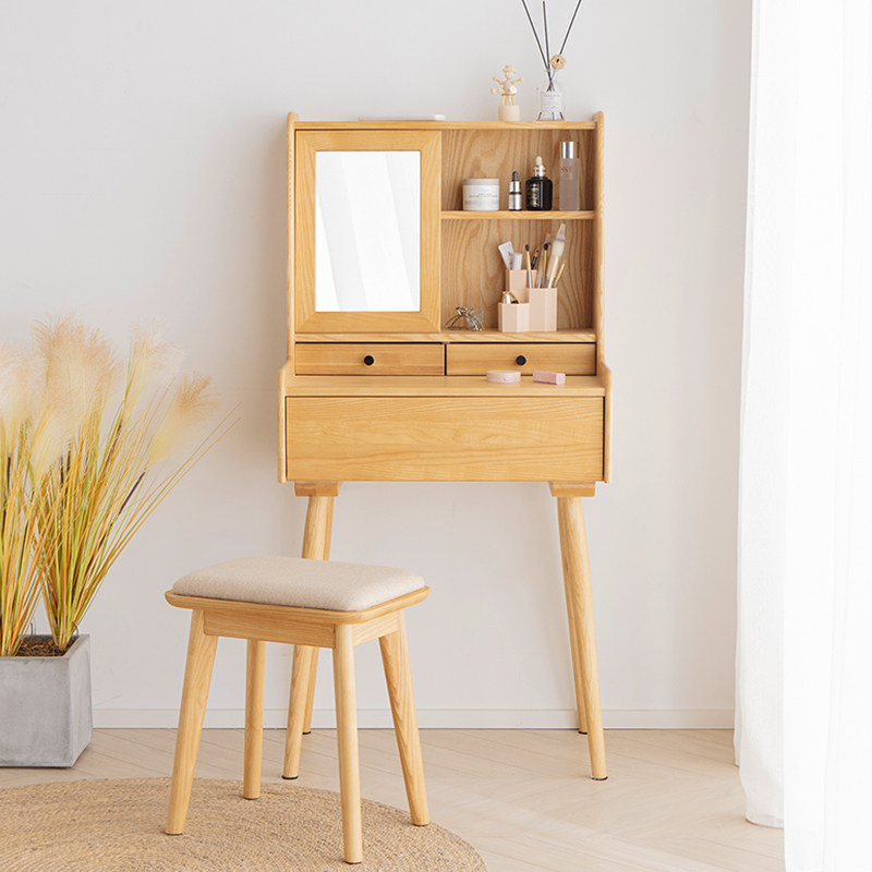 Nordic Wind Small Family Style Dresser White Wax Wood Solid Wood Containing Makeup Table Modern Minimalist Bedroom Furniture