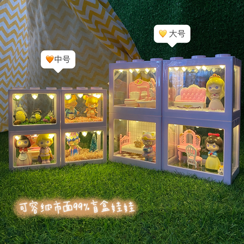 Blind box storage display stand with light Lego stand-up transparent display cabinet dust-proof view box model bubble Mart display box
