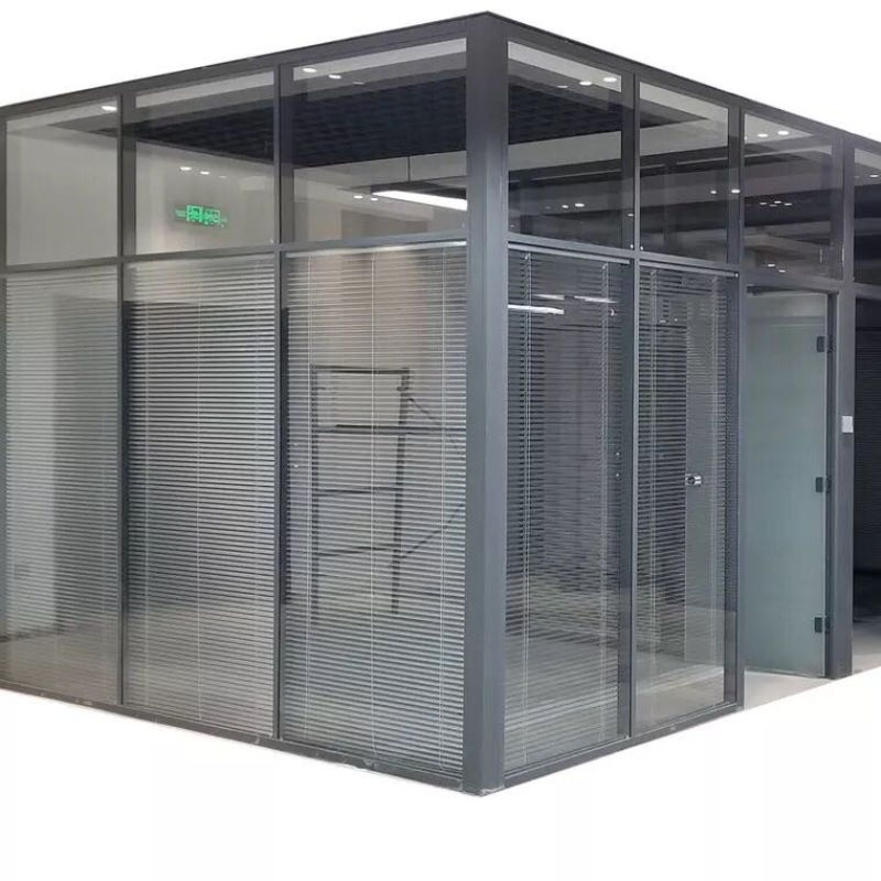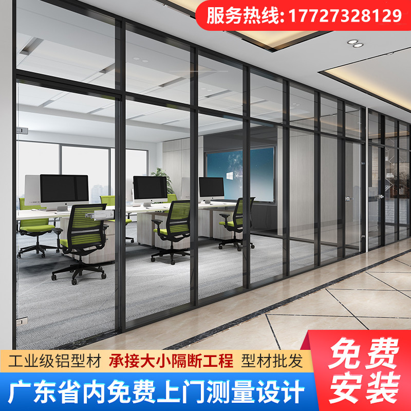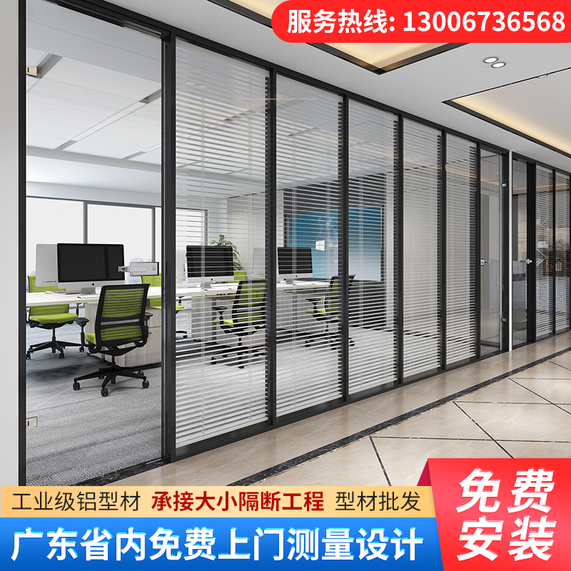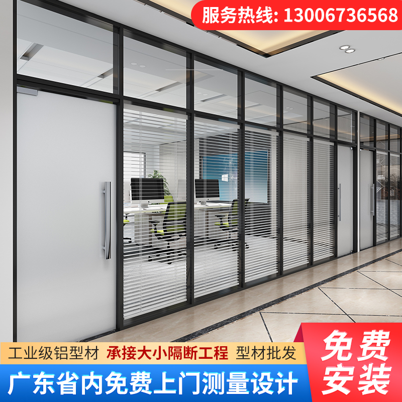 Office glass partition double-layer tempered hollow transparent glass soundproof wall aluminum alloy louver high partition partition