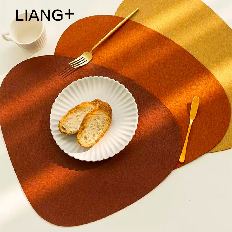 Leather ins placemat household oval plate mat desktop heat insulation mat Western meal mat waterproof and oil-proof Nordic style table mat