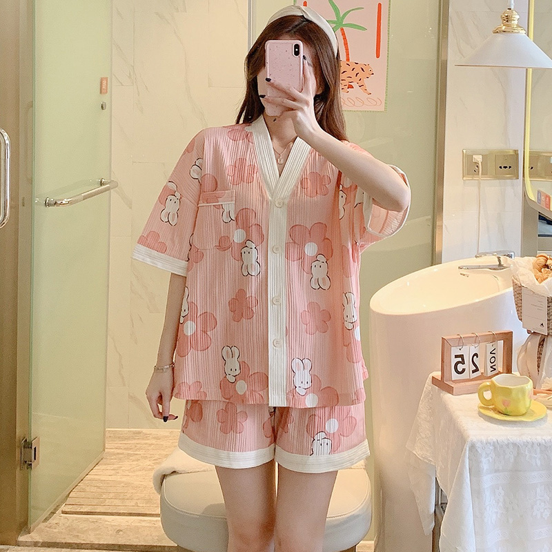 In 2022, the new cartoon pajamas lady pure cotton summer short sleeve thin clothing can be worn outside the home suit