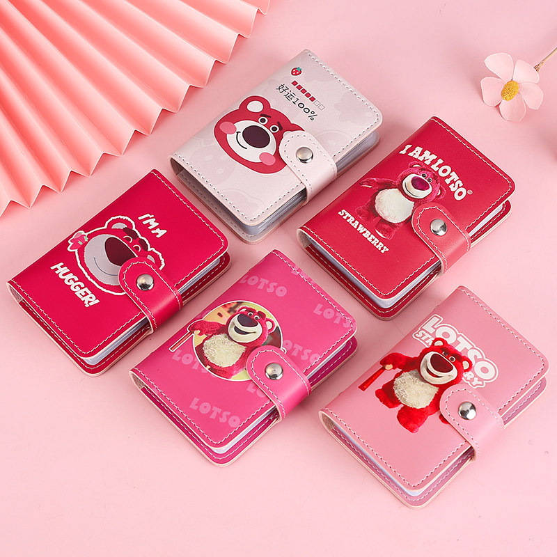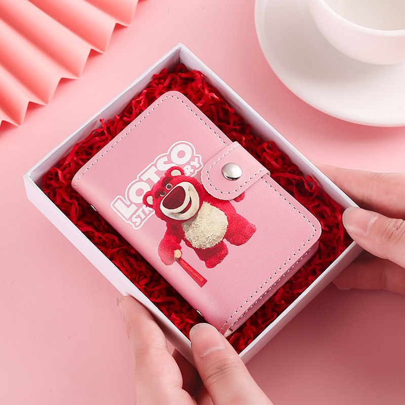 Cartoon pink bear cute card bag anti-theft brush large-capacity ins driver's license anti-magnetic multi-card ID card