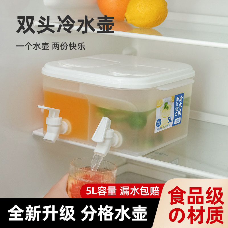 Refrigerator Cold Water Barrel Cold Water Jug Ice Water Pot Harness Tap Large Capacity Home Kettle Summer High Temperature Resistant Teapot Lemon Water
