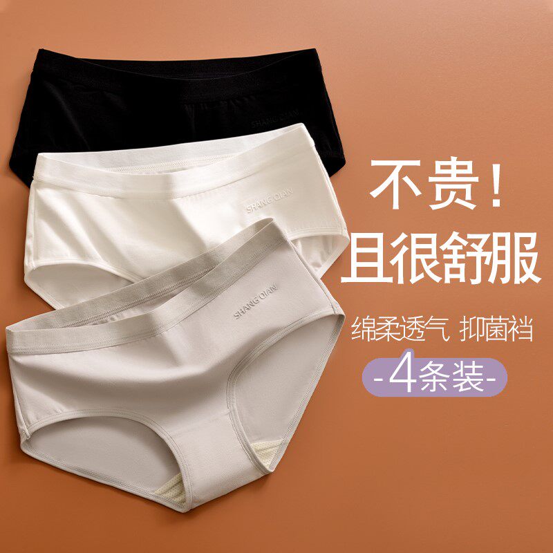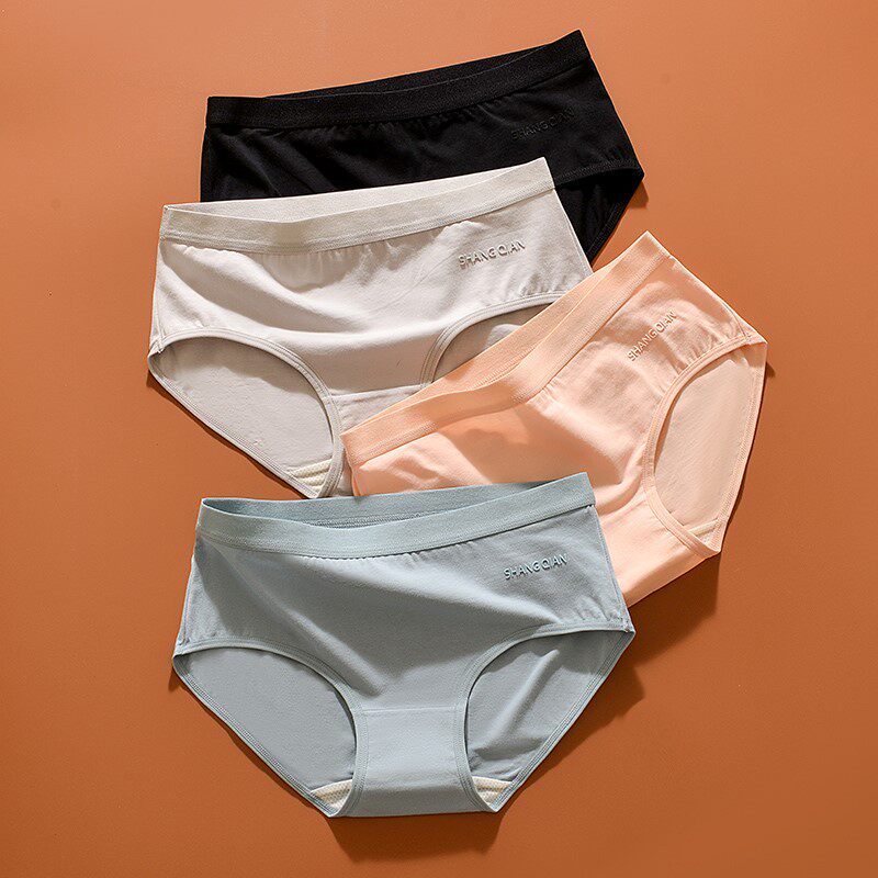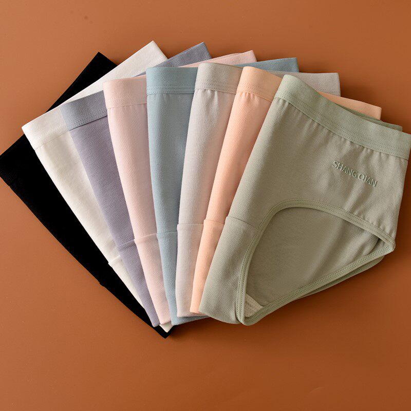 Pure cotton antibacterial briefs female European and American minimalist pure color mid waist No marks breathable tighty and close to skin-skin-to-hip girl's underwear