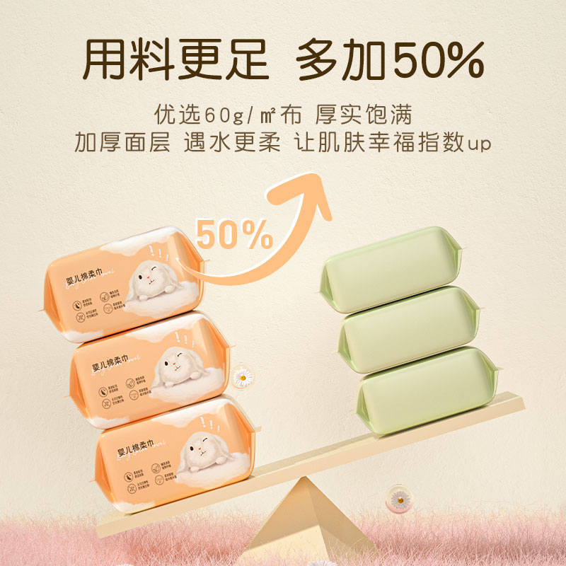 De Yu baby cotton soft towel newborn baby hand button special thickening face towel dry and wet dual use tissue 100 pumped