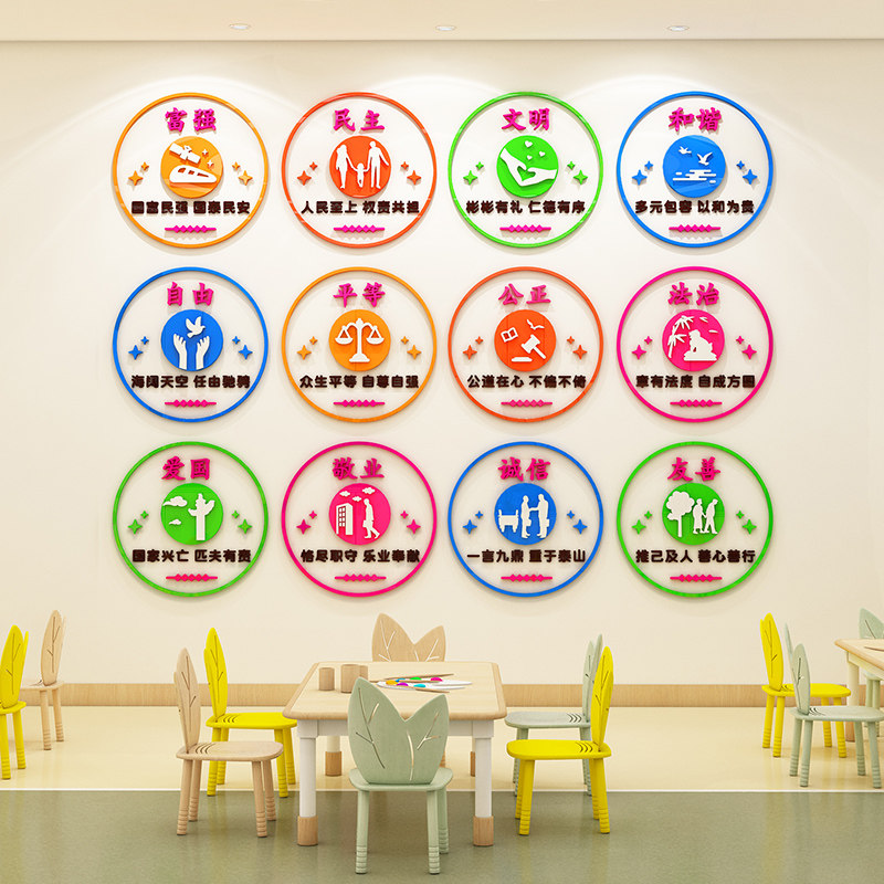 Socialist core values theme cultural wall pasted kindergarten hall classroom ring decoration wall decoration