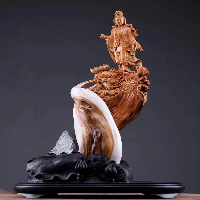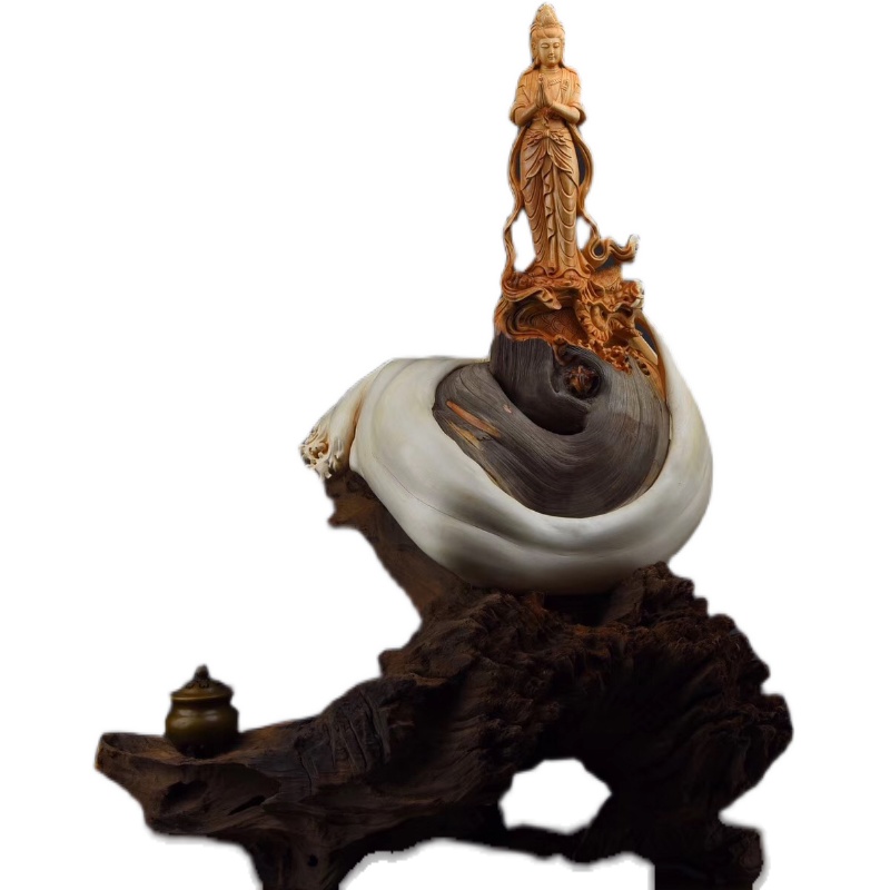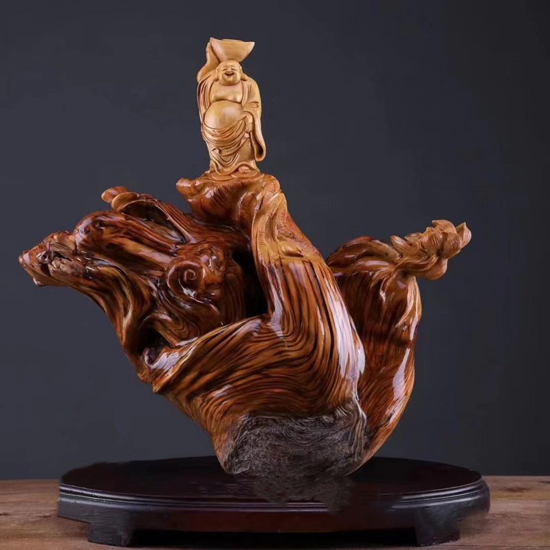 Taihang cypress hand-carved root art ornaments character flower stand backflow fragrant solid wood old material craft gift ornaments