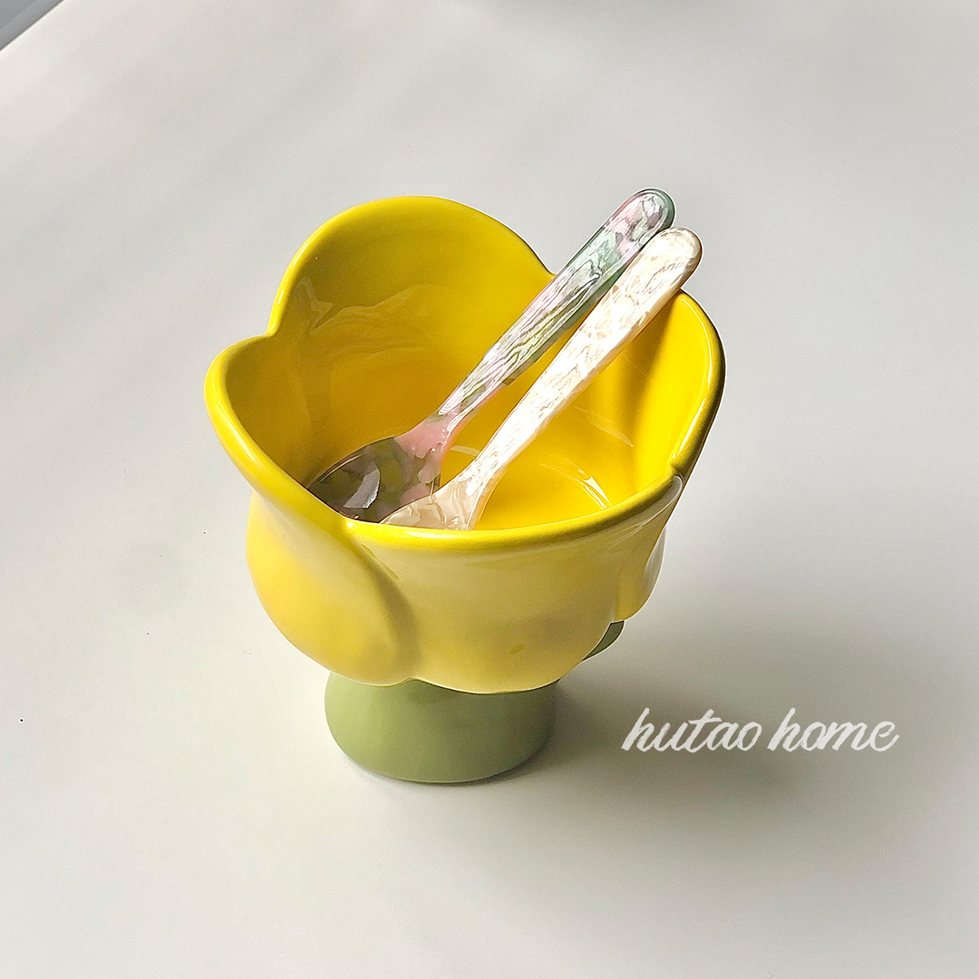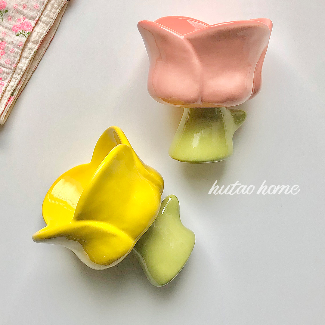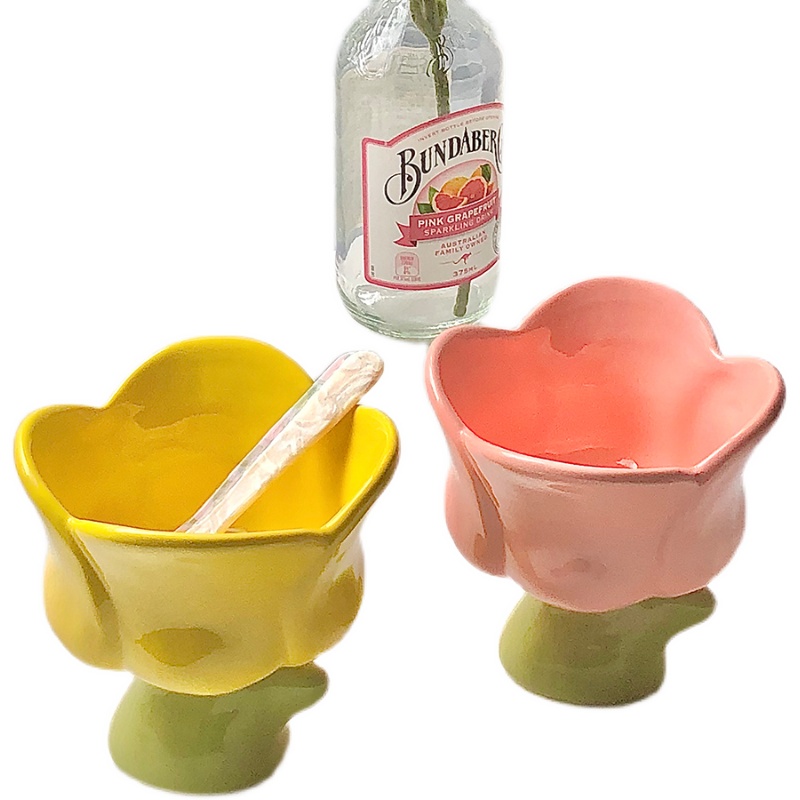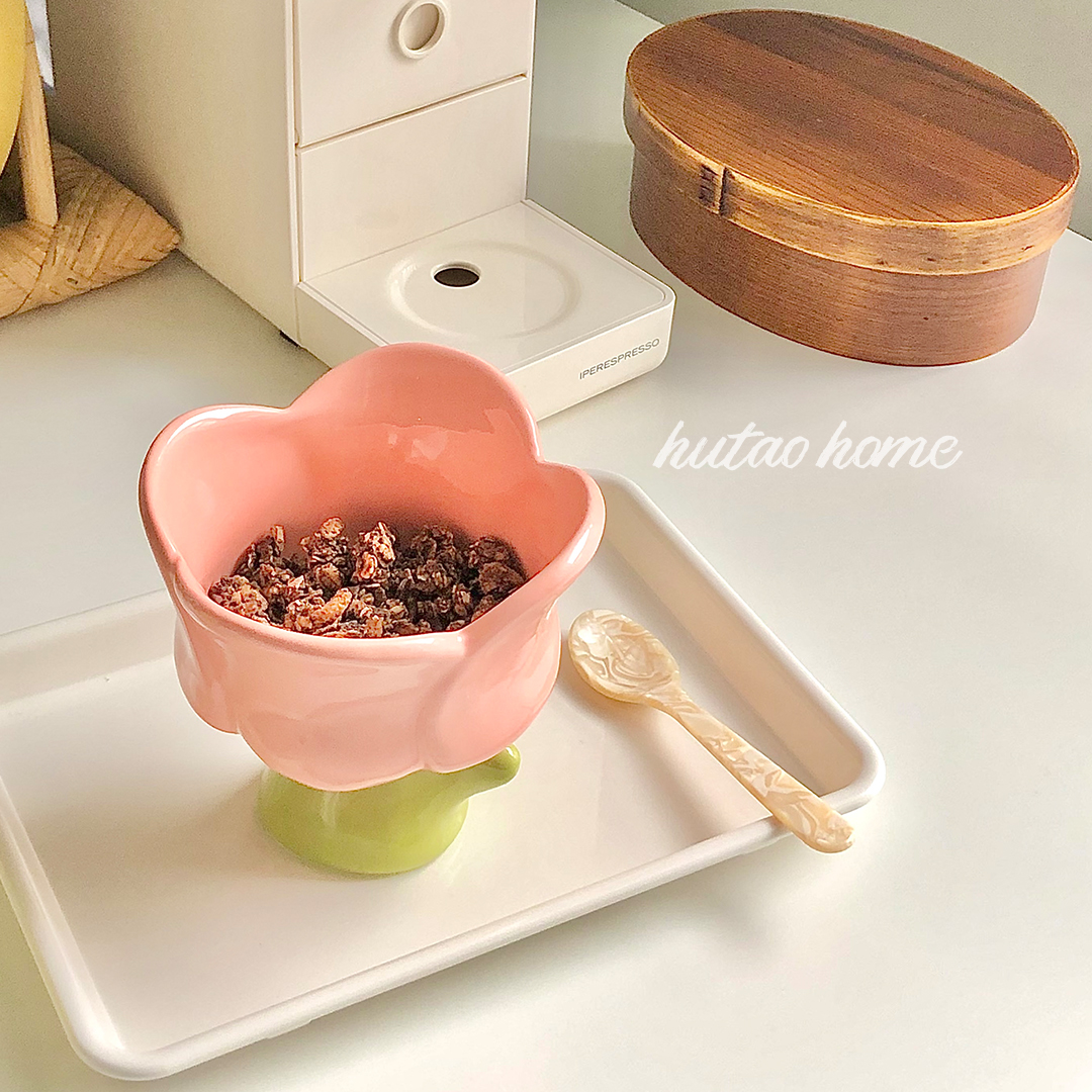 ins wind Korean style teenage girl's heart knead tulip glaze lower color salad bowl yogurt bowl of fruit bowl pink irregular