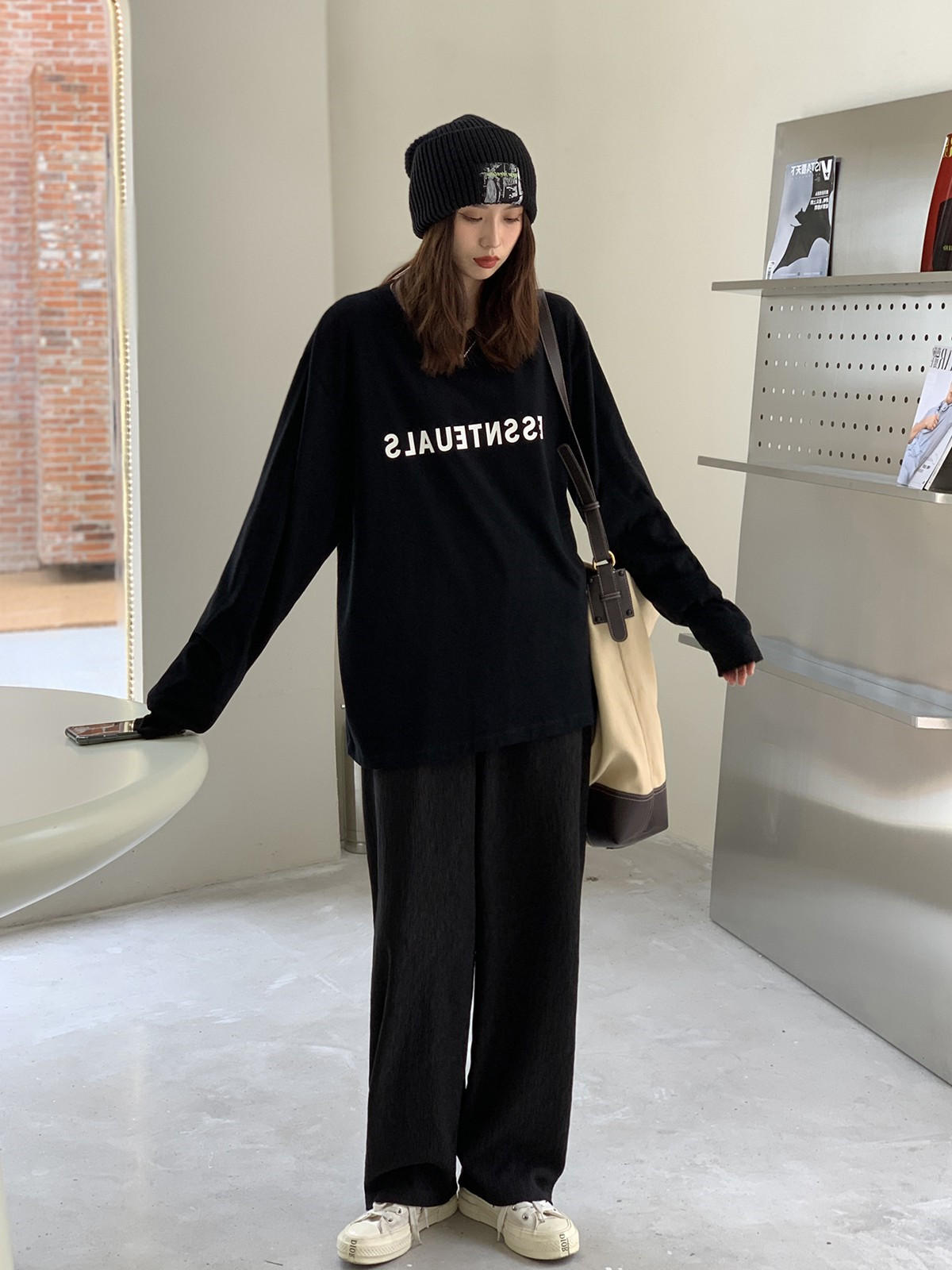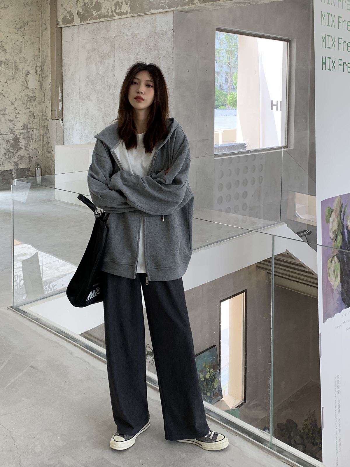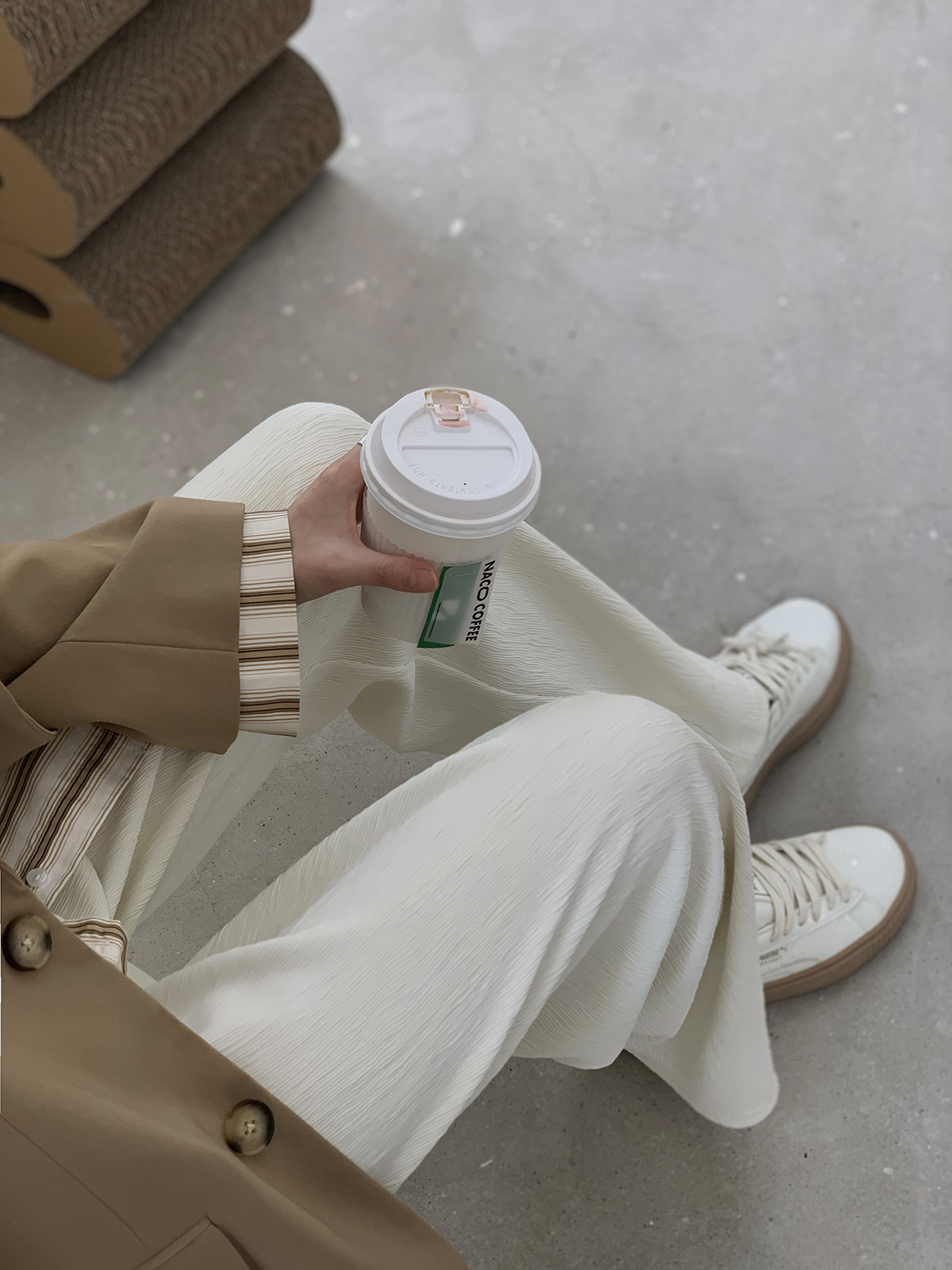 Japan Spring New Breakthrough White Slippers Textured Breaky Breakfast Leisure Female Loose High Low Leisure Vertical Trousers